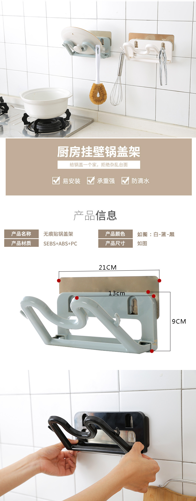 商品名称:家用厨房用品用具小百货放的锅盖收纳架子菜板免打孔挂壁置物架