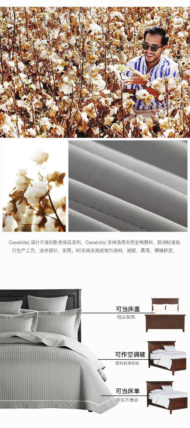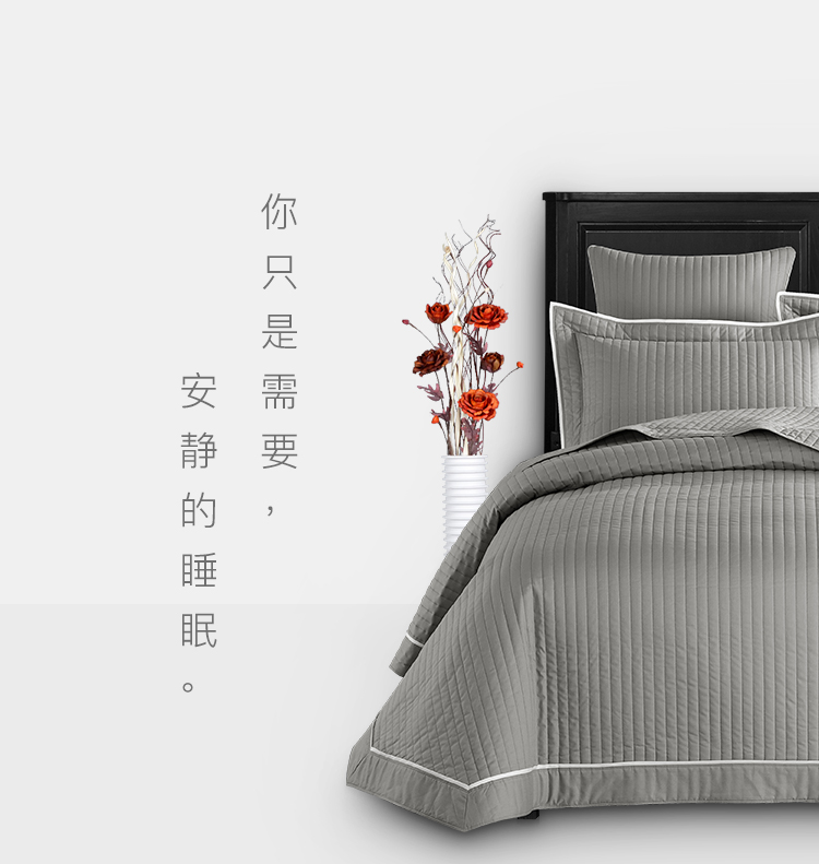商品名称:出口梅西百货全棉床盖三件套 绗缝防尘装饰空调被灰色床上用品