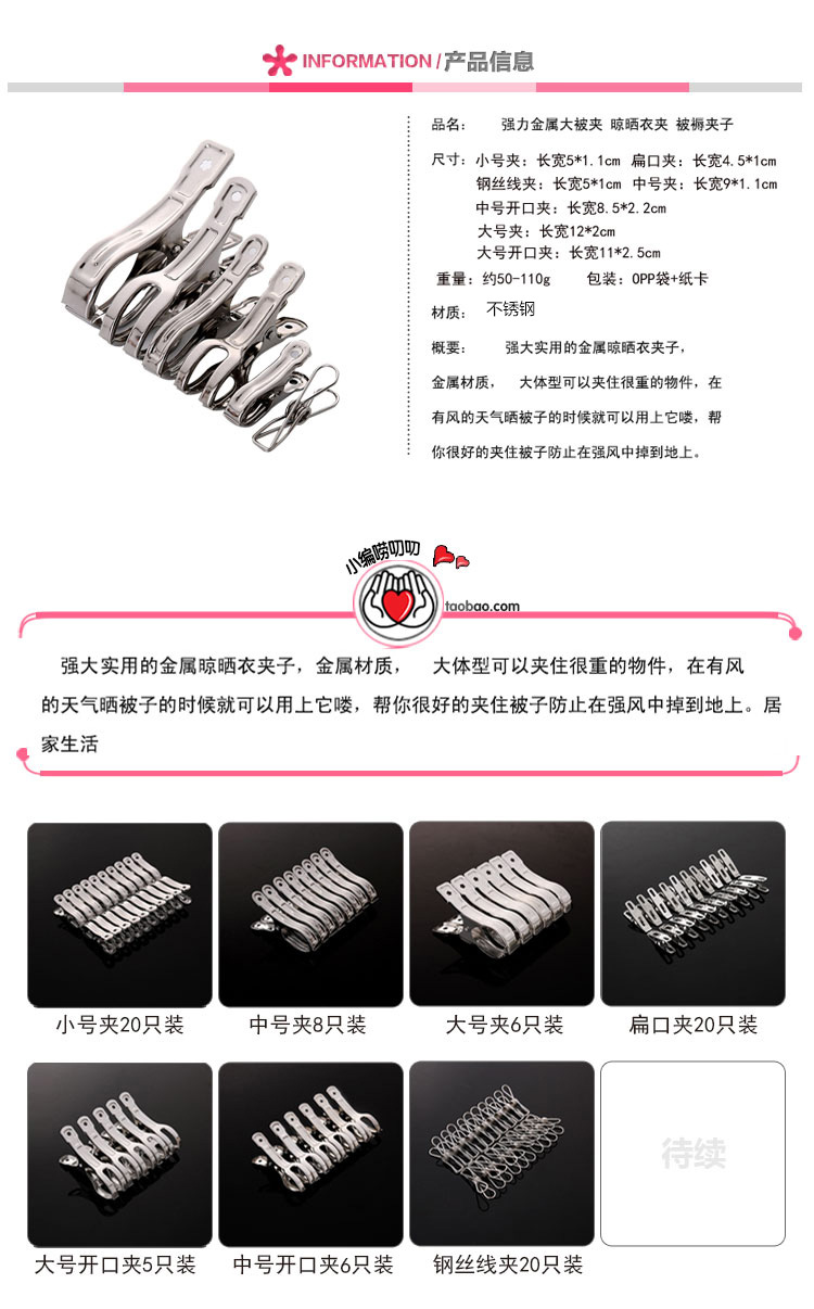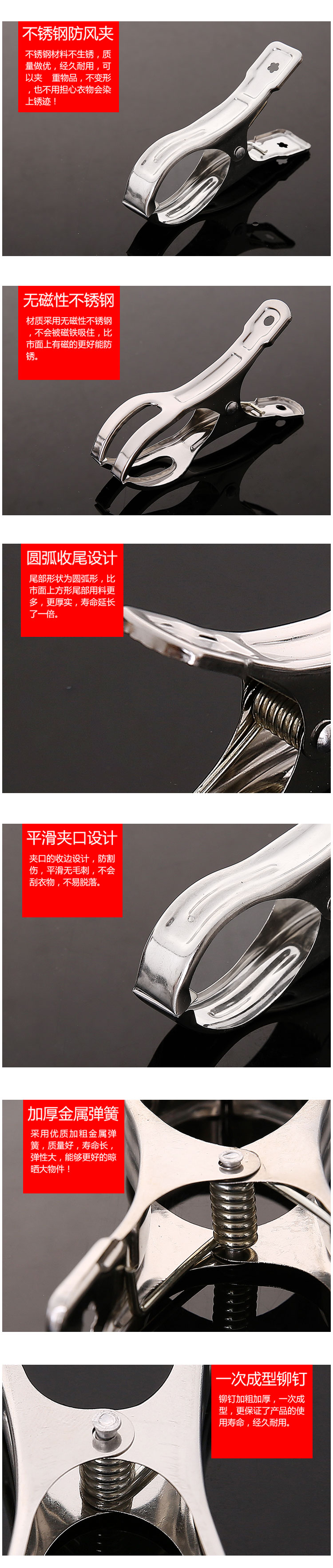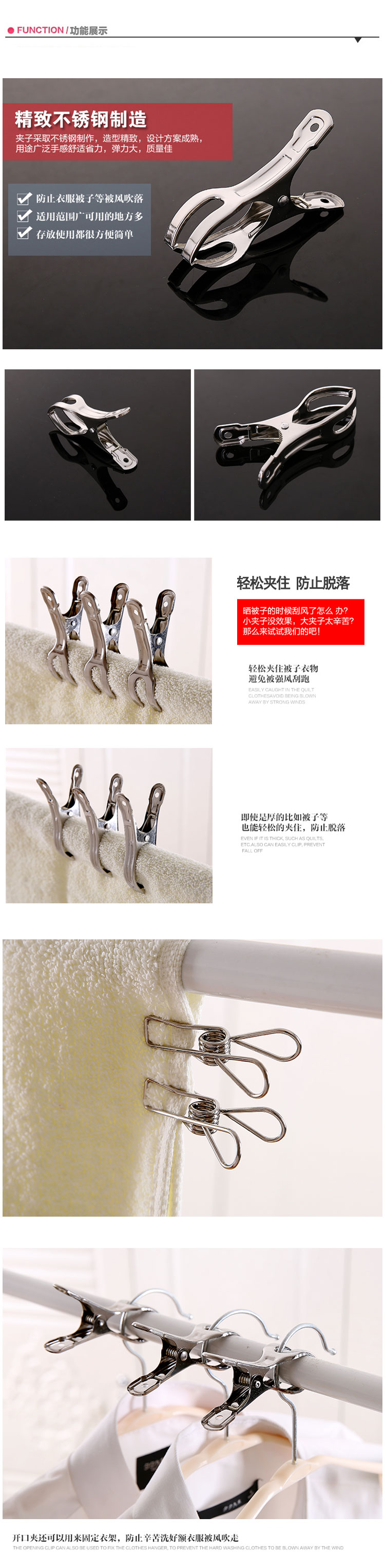 商品名称:大号不锈钢夹子家用晾衣夹晾被子小夹子强力防风夹晒衣服夹子衣架