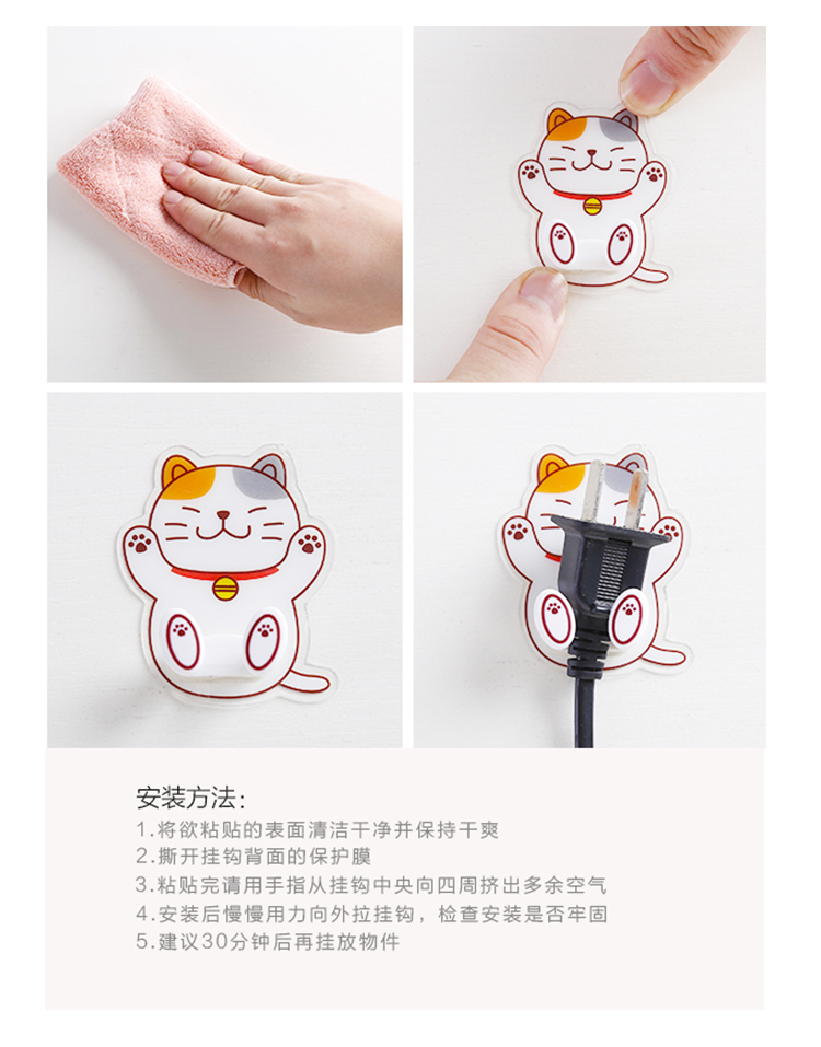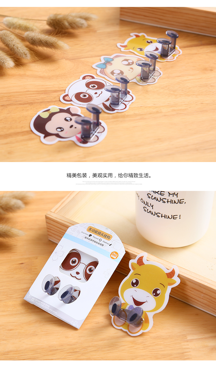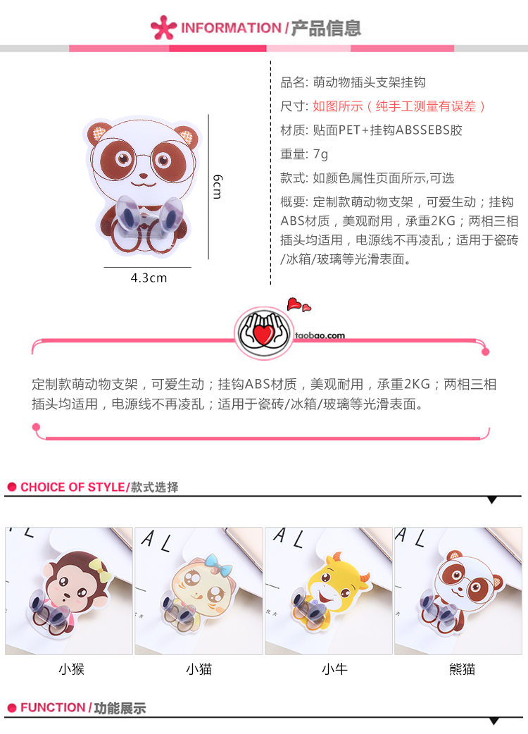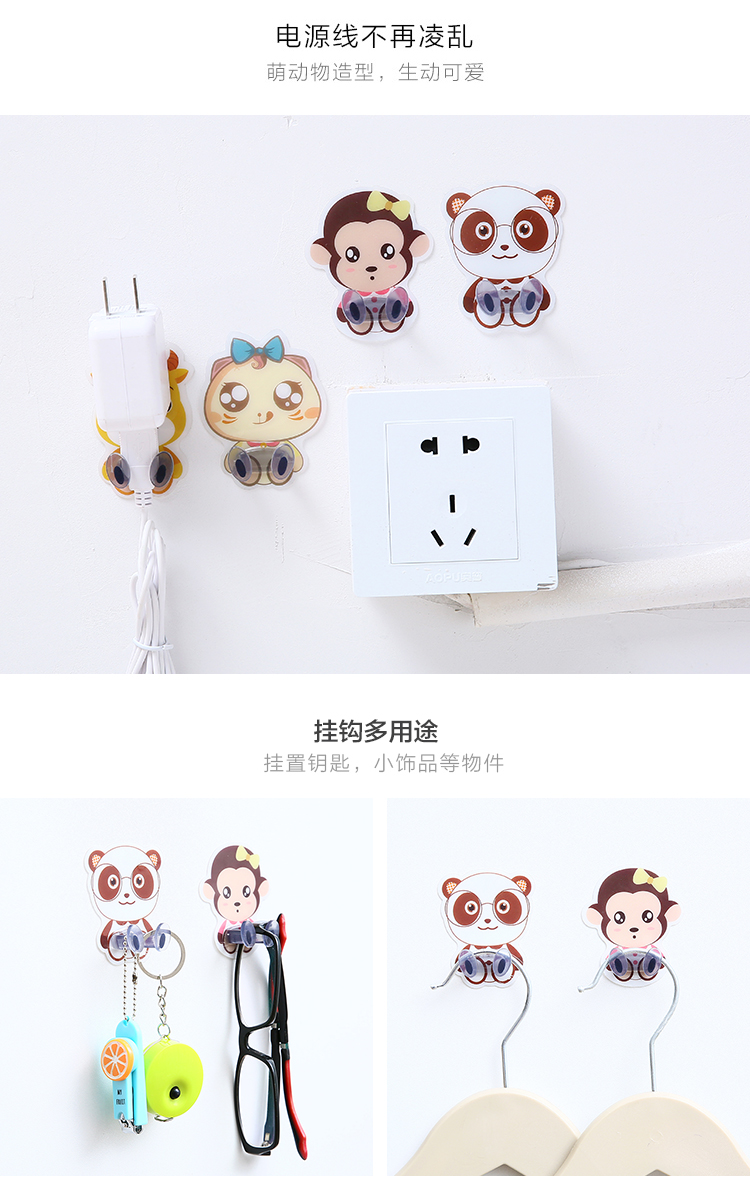 商品名称:卡通动物粘胶插座挂钩电源插头粘贴收纳支架塑料墙壁强力免钉粘钩
