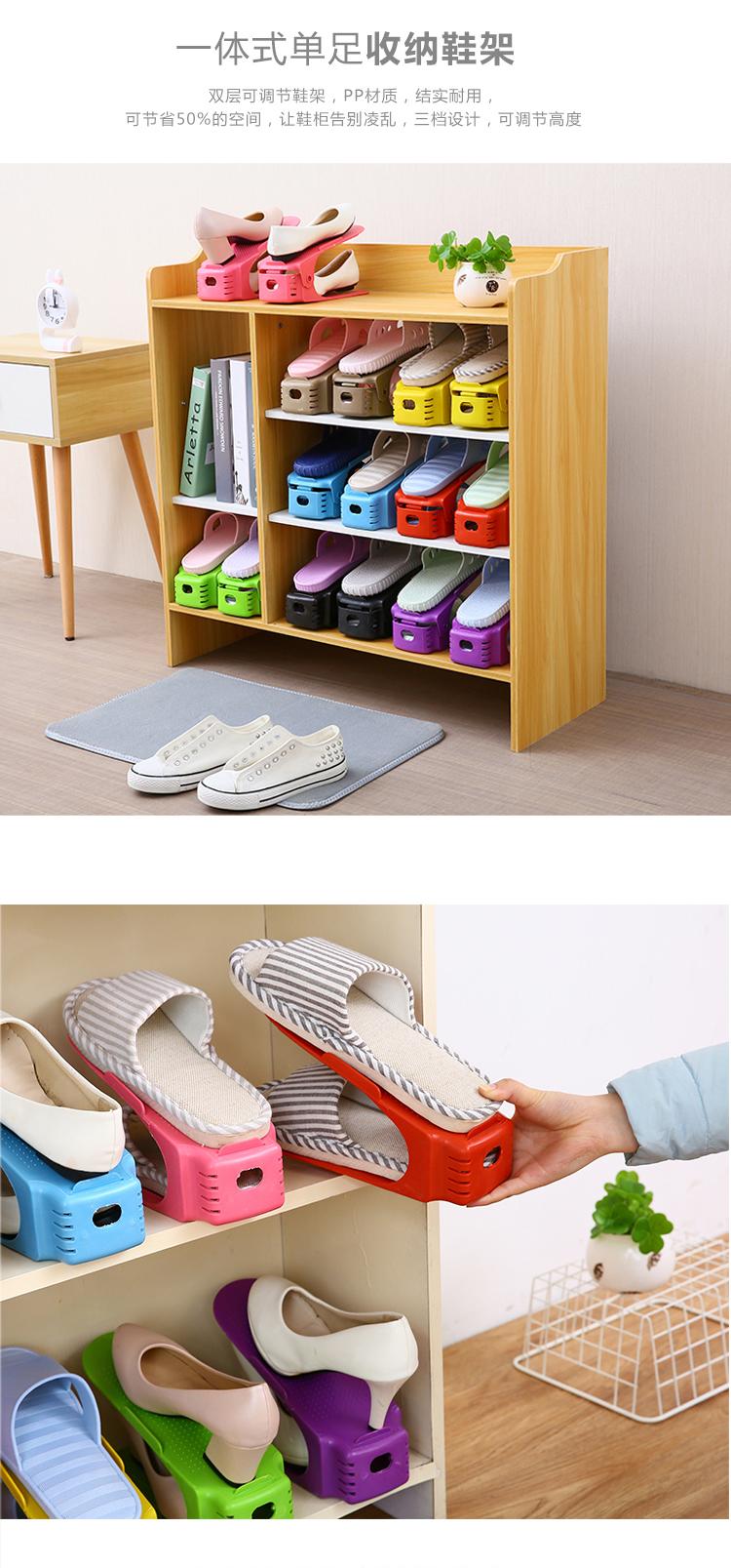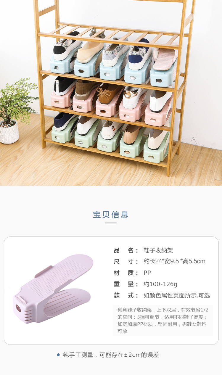 商品名称:家用双层鞋子收纳架塑料一体式鞋托简约现代客厅衣柜简易收纳鞋架
