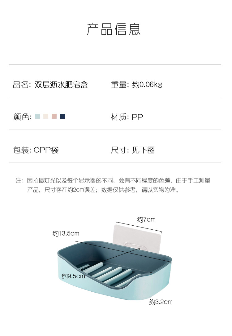 商品名称:创意肥皂盒吸盘壁挂香皂盒家用免打孔双层肥皂架沥水卫生间置物架