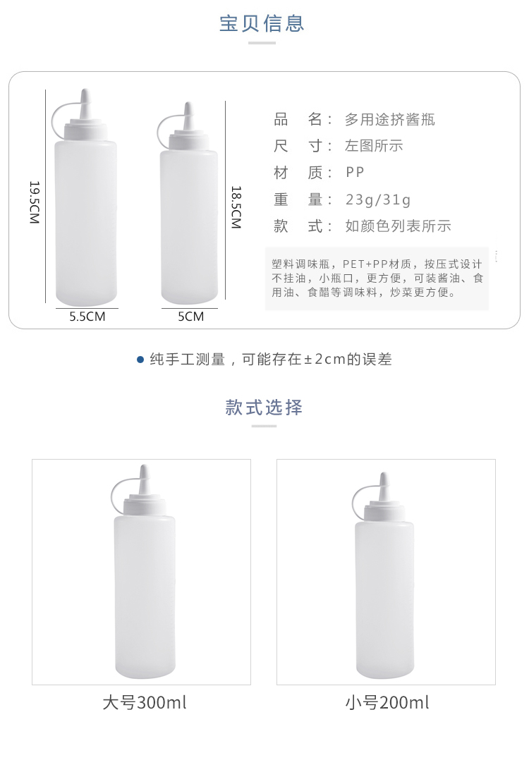 商品名称:集美 塑料挤酱瓶家用番茄酱沙拉挤压瓶酱料蜂蜜果酱汁瓶尖嘴瓶子