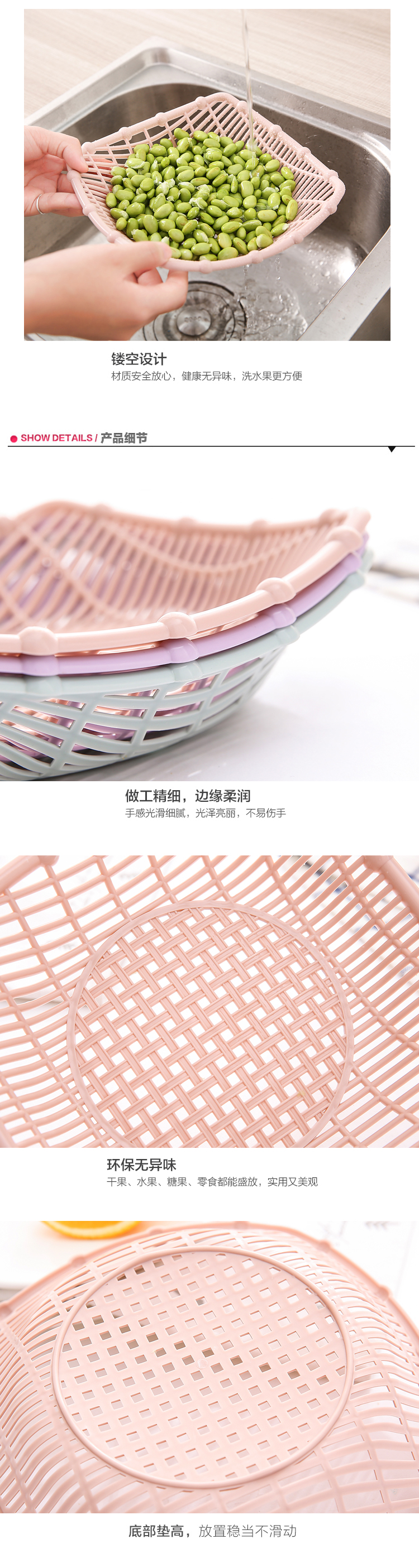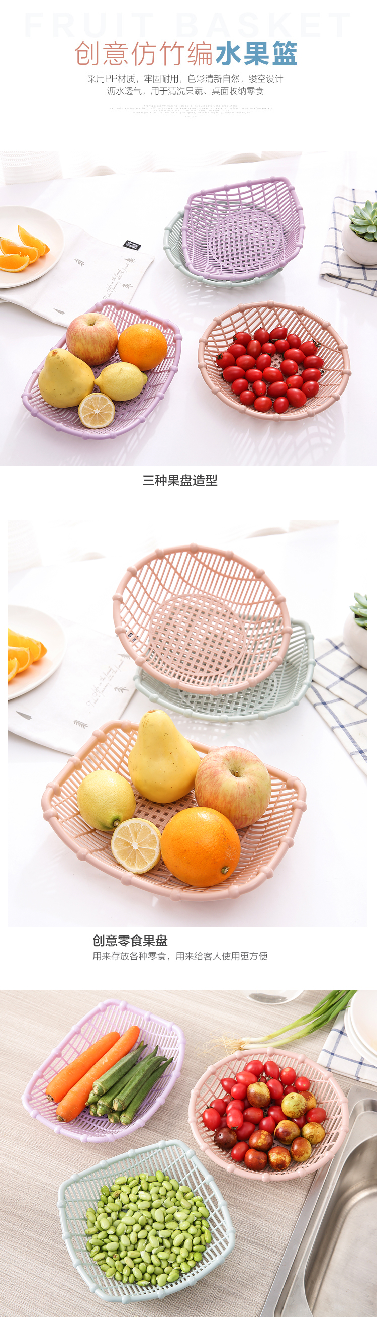 商品名称:塑料镂空水果盘零食盘子多功能水果篮家用客厅茶几简约糖果水果盆