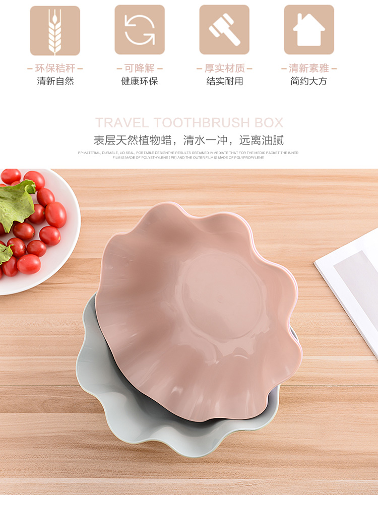 环保材质,可降解,结实耐用。热压成型设计,不含重金属,光滑表面,可降解,健康环保。清新素雅,可做果盘,可盛放水果、坚果等,装点家居。