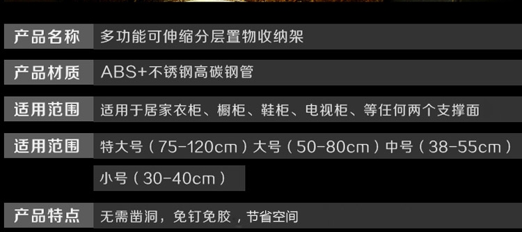 商品名称:优思居 衣柜整理分层隔板 橱柜免钉可伸缩置物架宿舍分层架收纳架