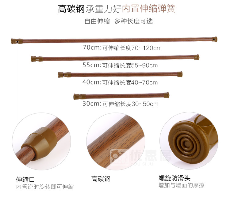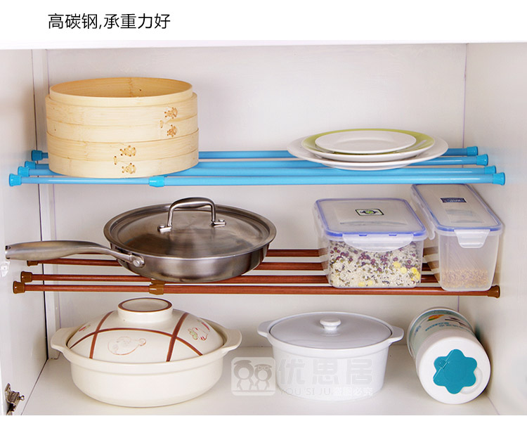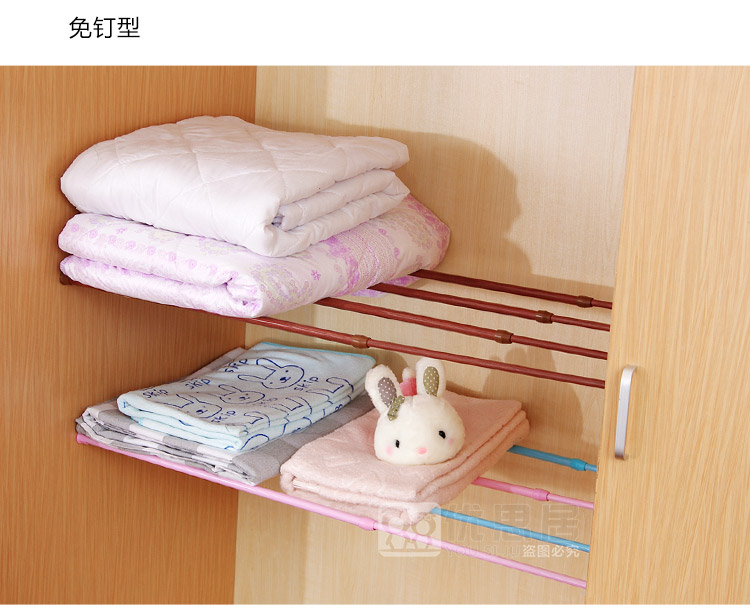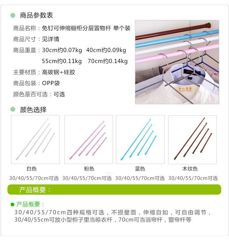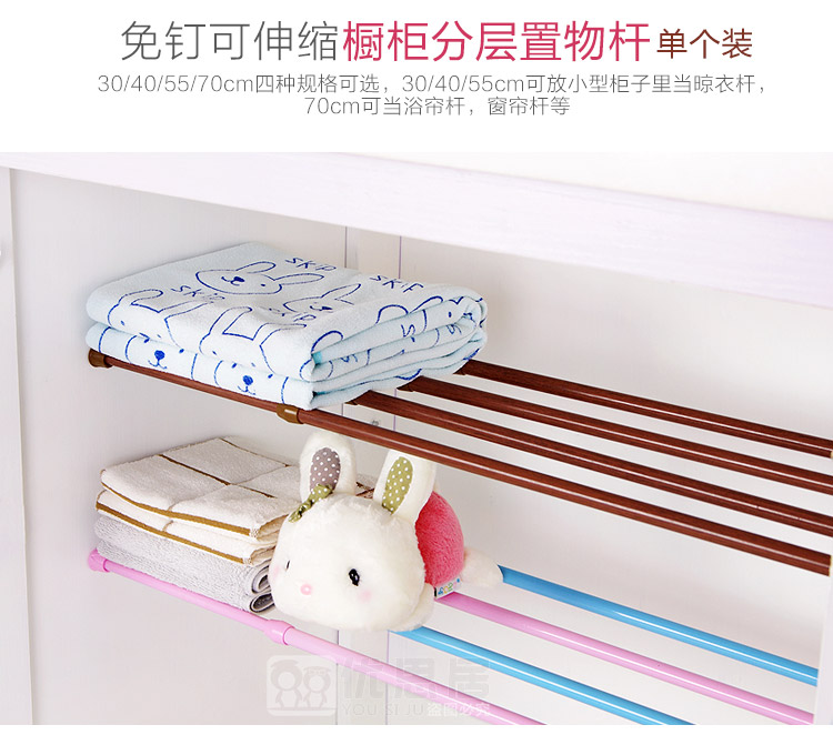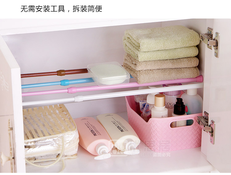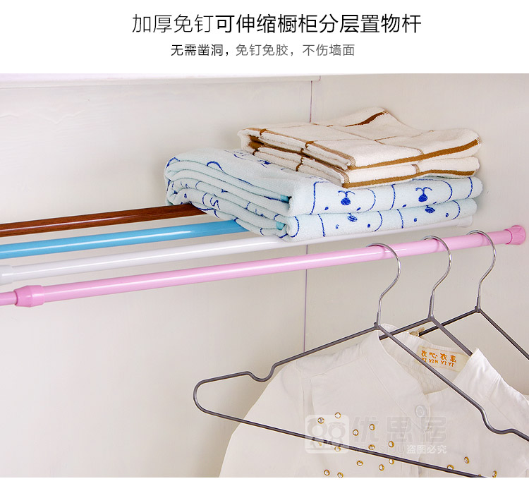 商品名称:免钉可伸缩橱柜分层收纳置物杆衣柜衣物隔层置物架浴室缝隙支撑架