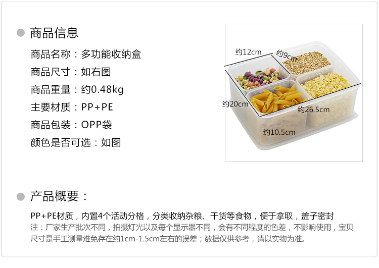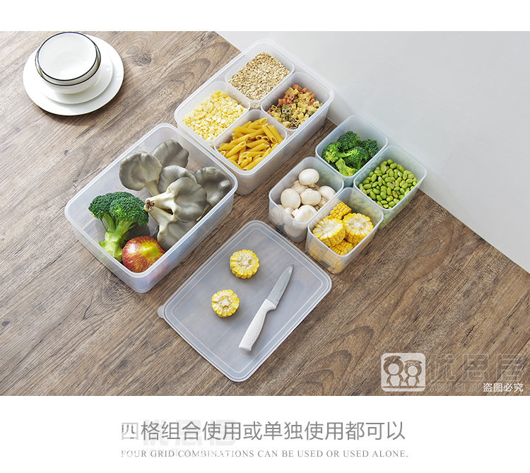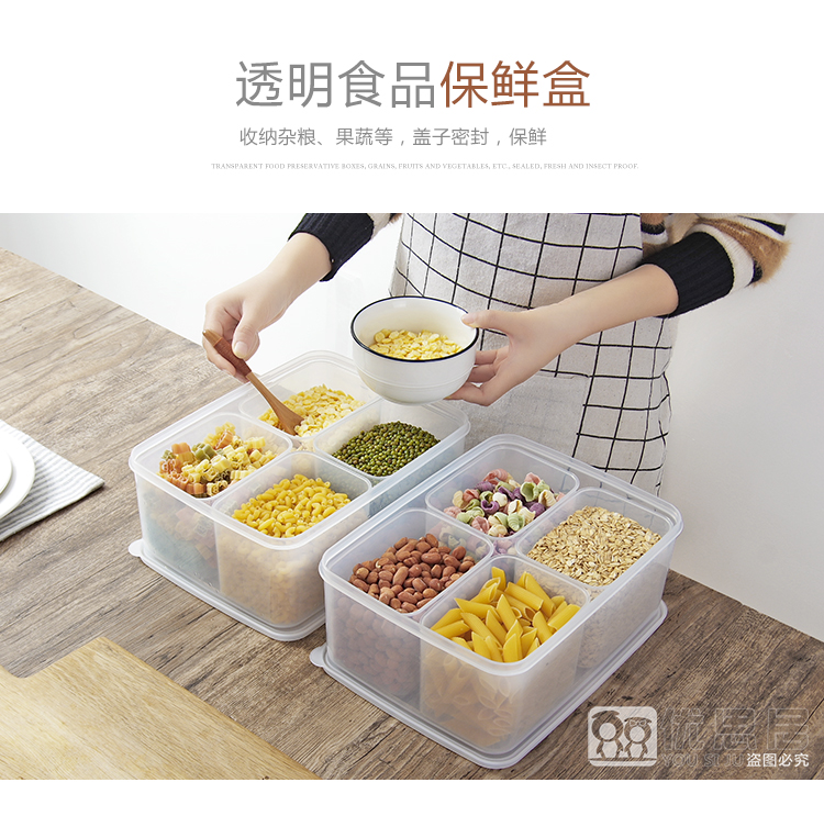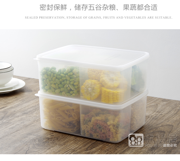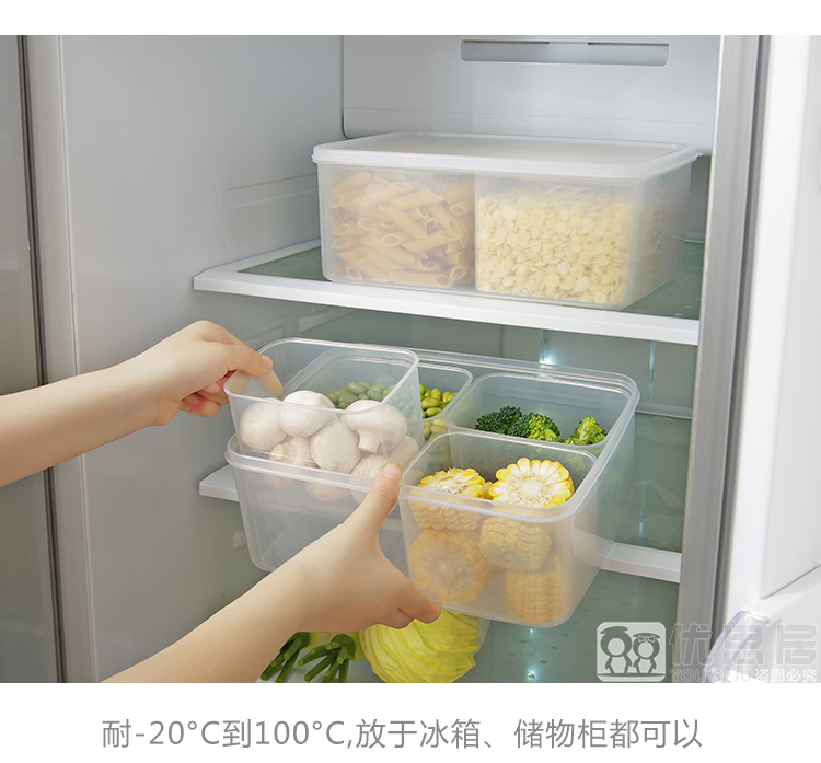 商品名称:优思居 塑料冰箱食物保鲜盒 家用透明分格储物盒厨房食品收纳盒子