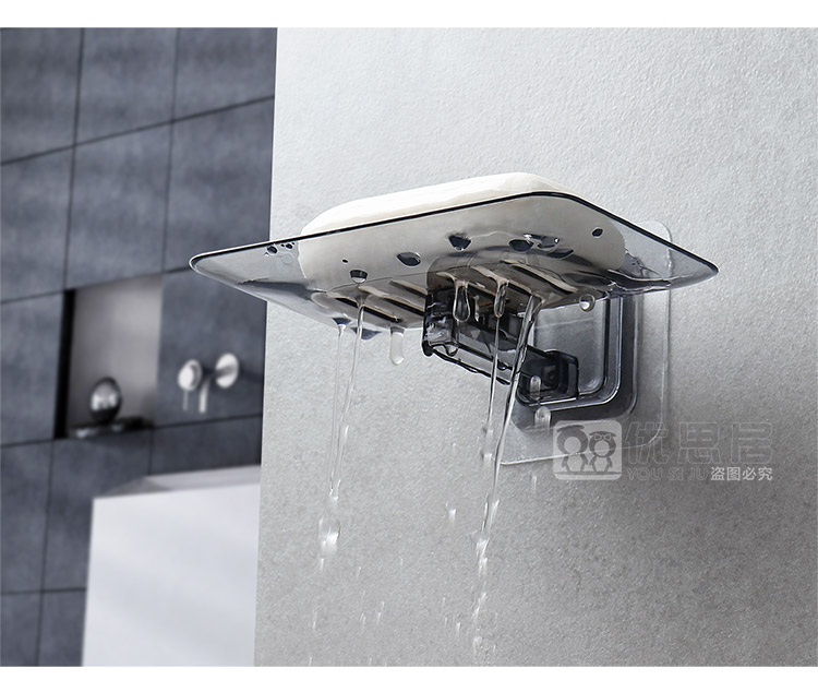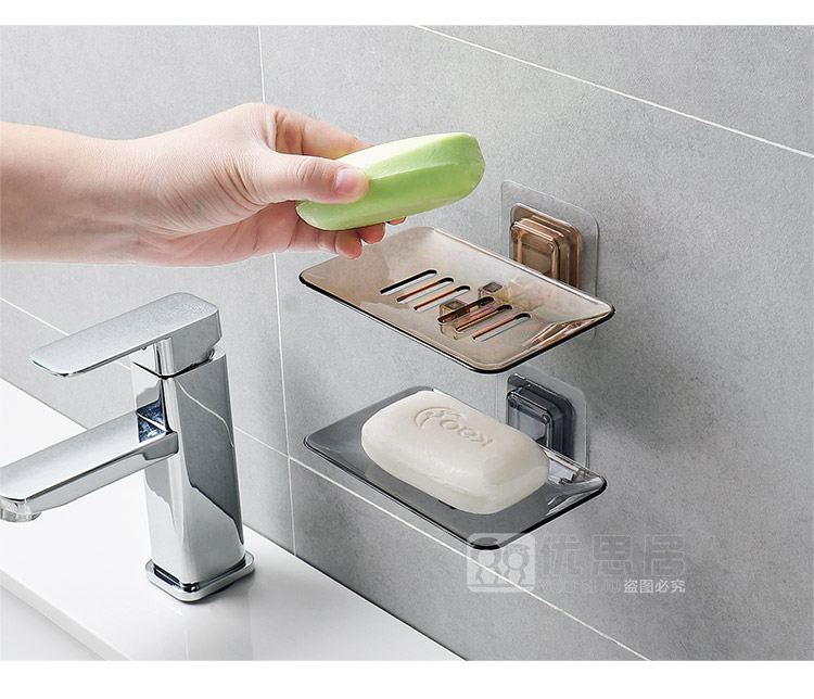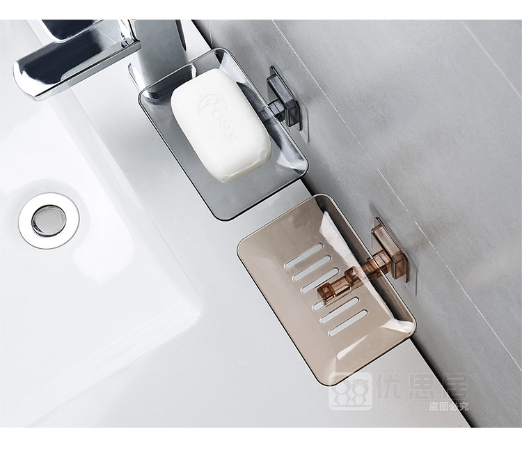 优思居 透明沥水肥皂盒 粘贴壁挂式肥皂架卫生间塑料香皂架香皂盒