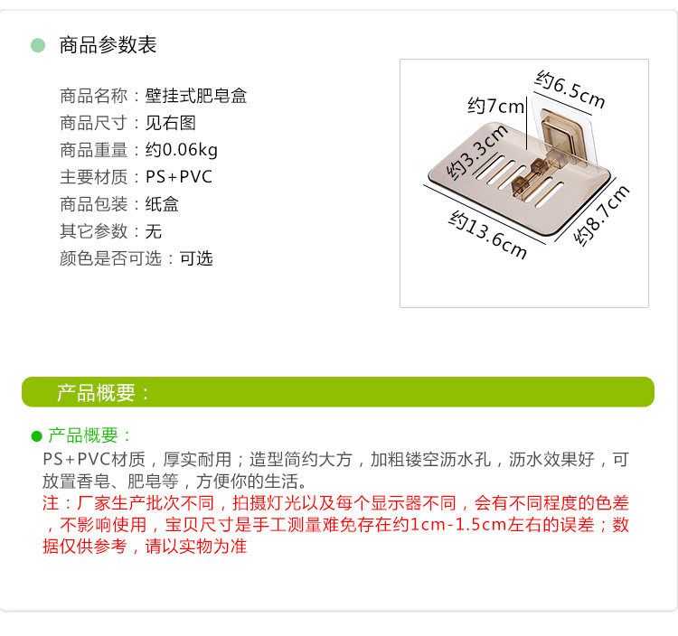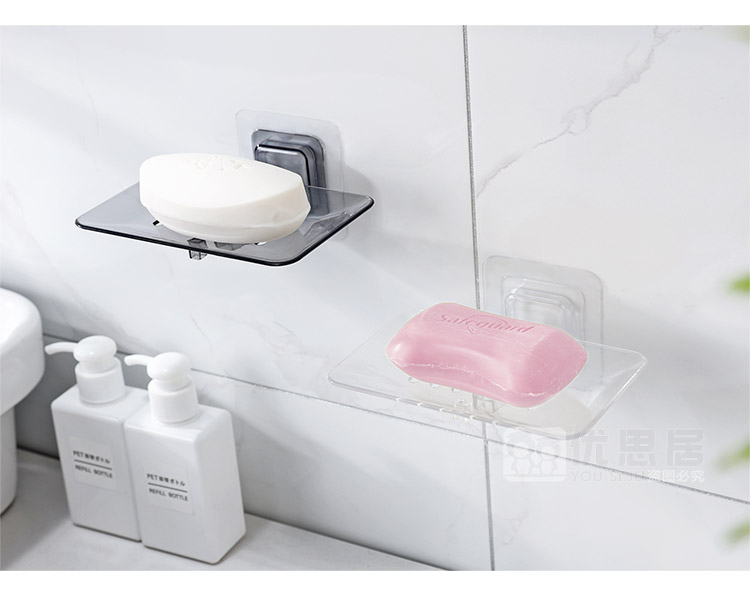 商品名称:优思居 透明沥水肥皂盒 粘贴壁挂式肥皂架卫生间塑料香皂架香皂盒