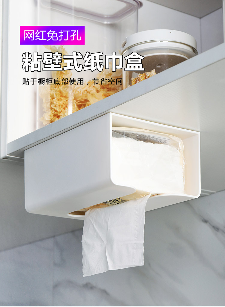 商品名称:优思居 免打孔厨房用纸收纳盒抽纸盒 无痕壁挂式纸巾架厕所纸巾盒