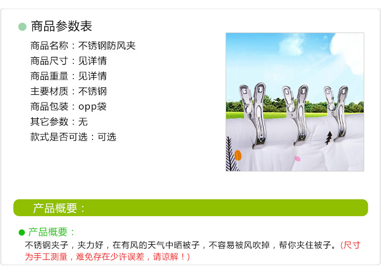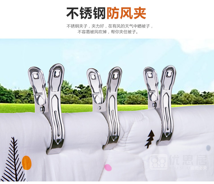 商品名称:特大号不锈钢夹子晒被夹子晾衣夹强力防风夹子晒衣服夹子晾被子夹