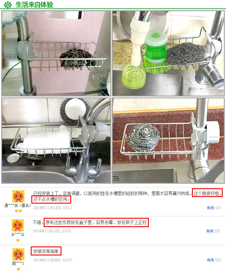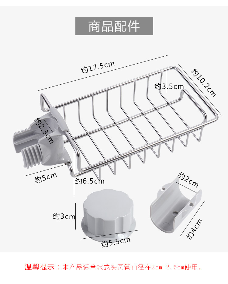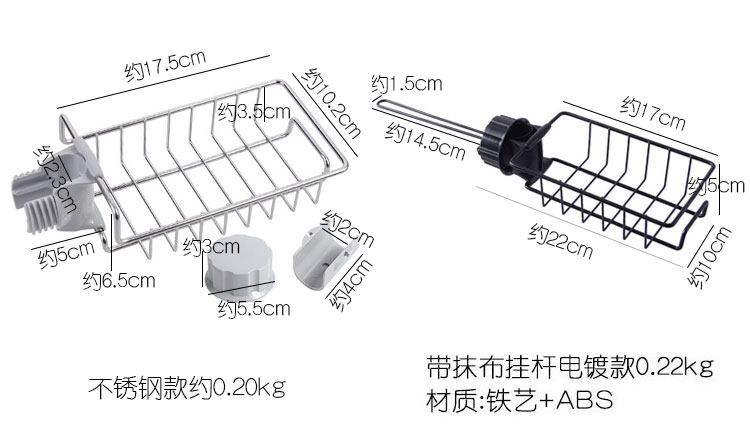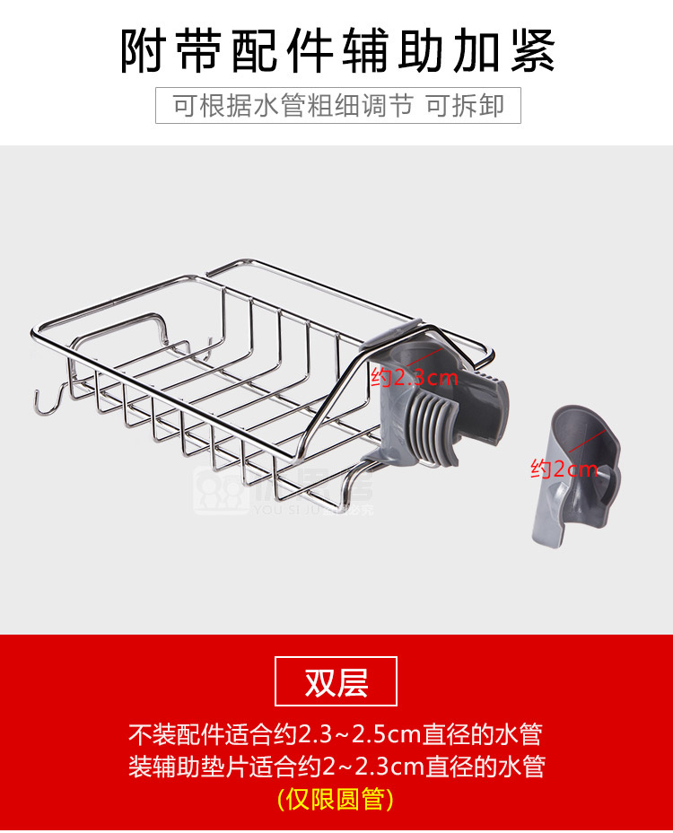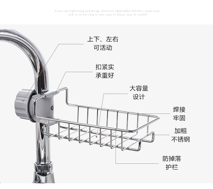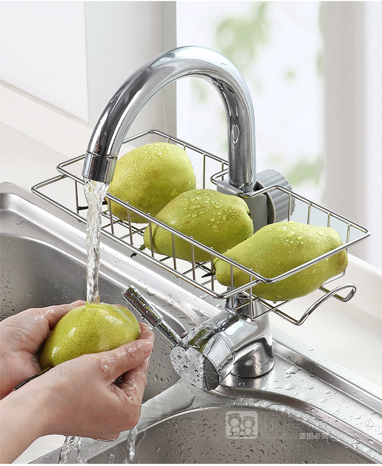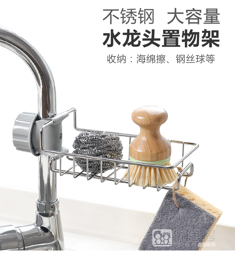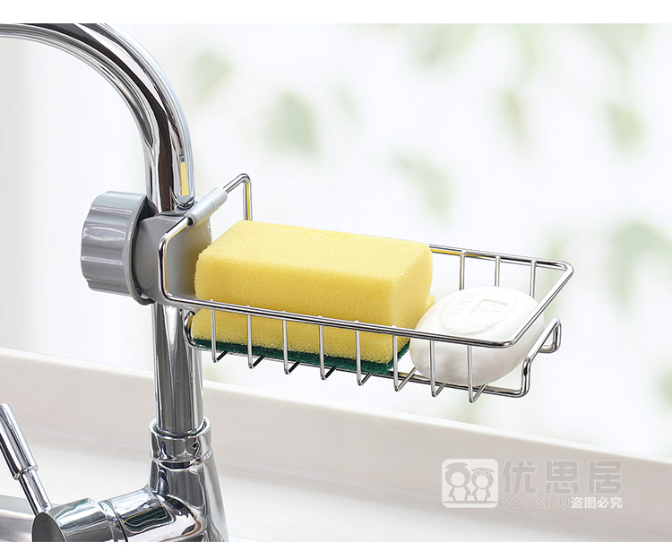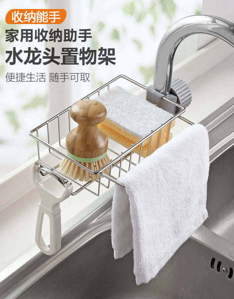 商品名称:优思居不锈钢水龙头置物架厨房收纳神器家用水槽挂篮抹布架沥水架