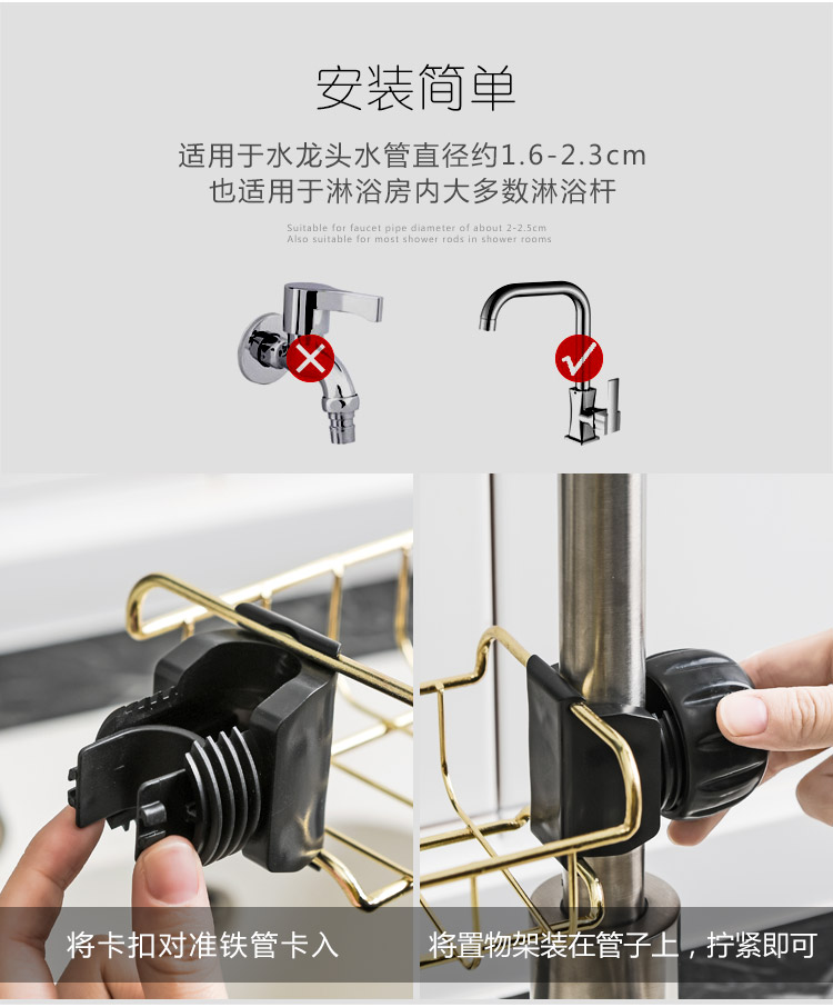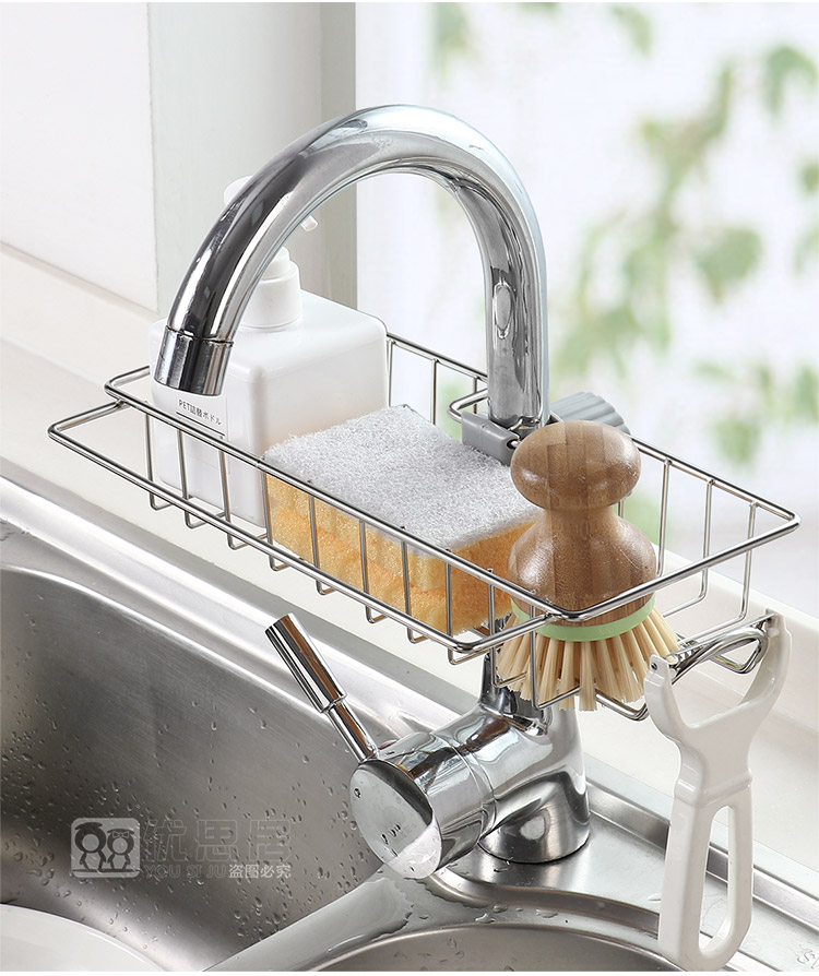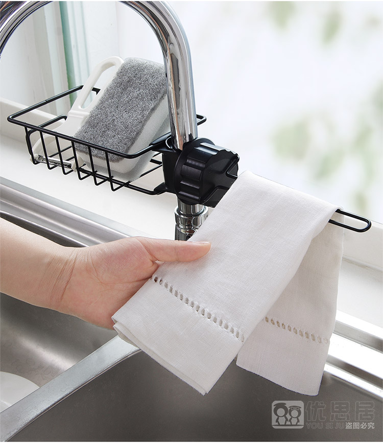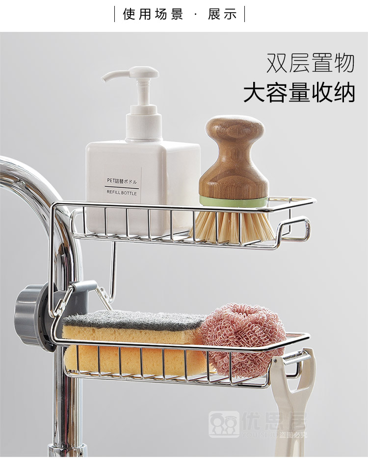 优思居不锈钢水龙头置物架厨房收纳神器家用水槽挂篮抹布架沥水架