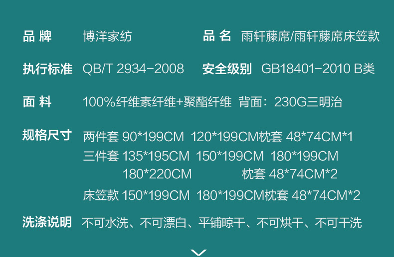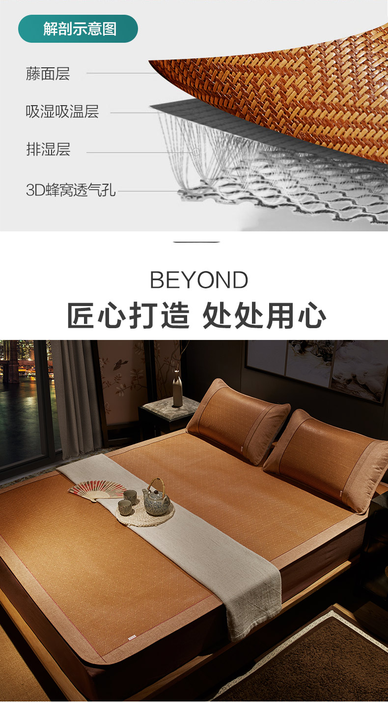 商品名称:藤席凉席1.8m床双人1.5米可折叠床笠席子2.0米天然纯藤夏凉席1.2