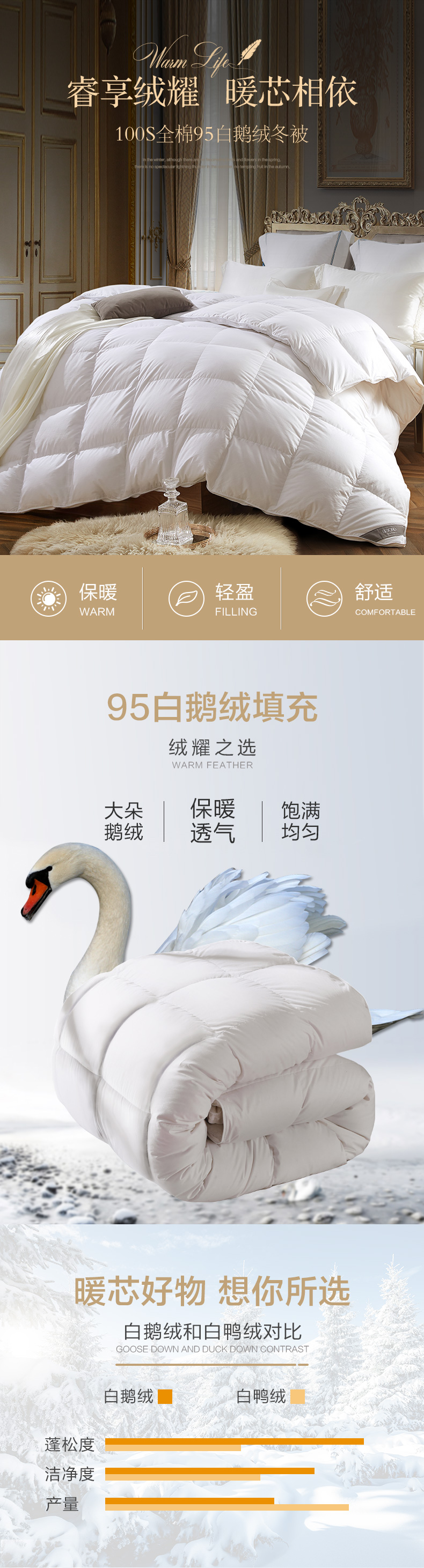 商品名称:博洋100支全棉95白鹅绒冬被秋冬季羽绒被子加厚保暖被芯单双人