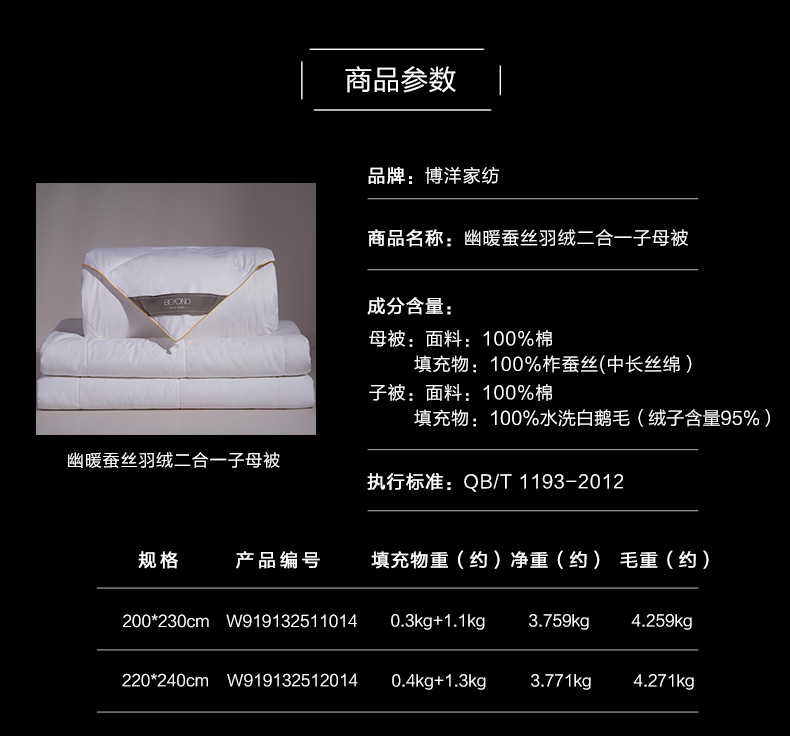 商品名称:博洋95白鹅绒子母被二合一全棉冬天被子加厚保暖四季被蚕丝冬被子
