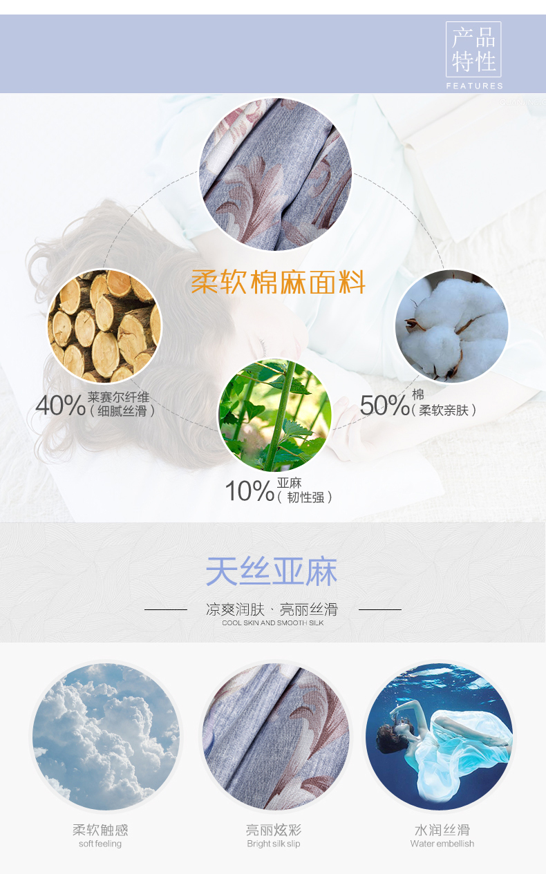 产品成分含量 | 面料:50%棉 40%莱赛尔纤维 10%亚麻