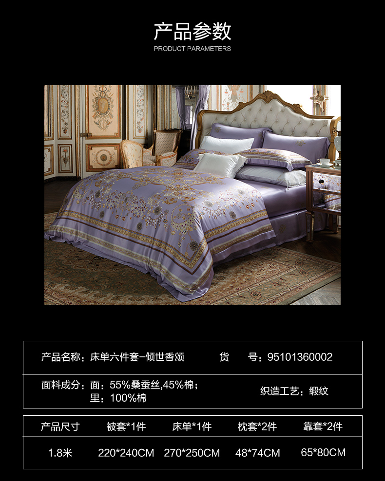 商品名称:博洋家纺六件套床单床品床上用品被套桑蚕丝蚕丝长绒棉欧式高档