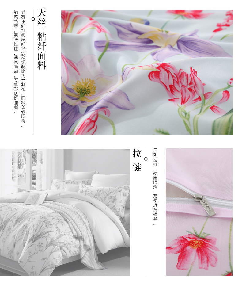 博洋家纺床上四件套天丝被套被单冰丝床上用品官方床品套件双人春