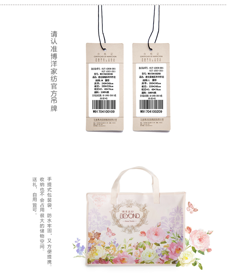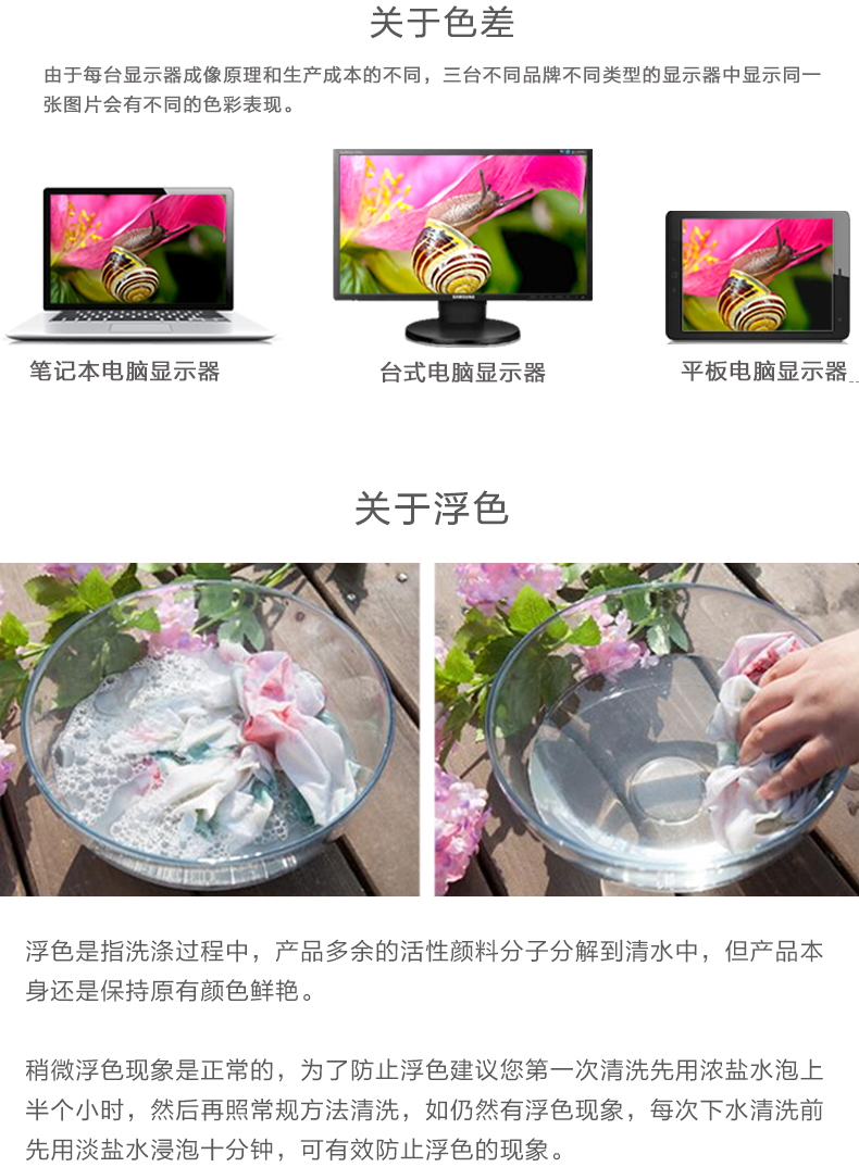 温 馨 提 示 | 由于面料位子裁剪的原因,在制作时会出现AA面,不属质量问题。备注:产品重量为样品中抽取称重,由于产品不同可能重量存在小误差,介意者慎拍! |