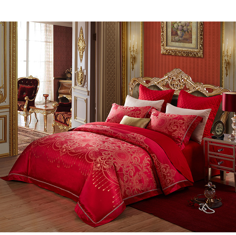 博洋婚庆提花四件套结婚床上用品大红红色新婚被套床单婚礼婚房