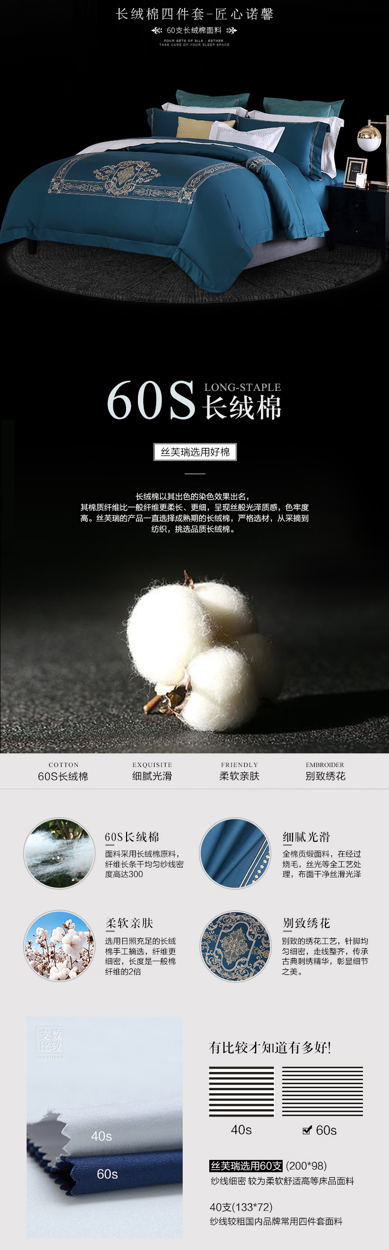商品名称:博洋家纺60支长绒棉四件套全棉纯棉床单床上用品欧式纯色刺绣