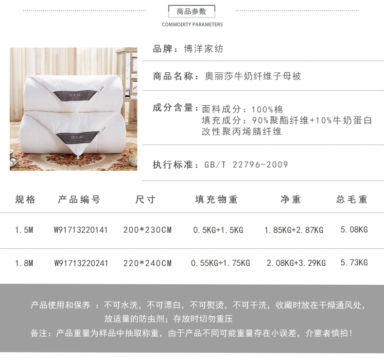 商品名称:博洋纯棉牛奶纤维被春秋被子全棉二合一子母被芯冬被冬天保暖加厚