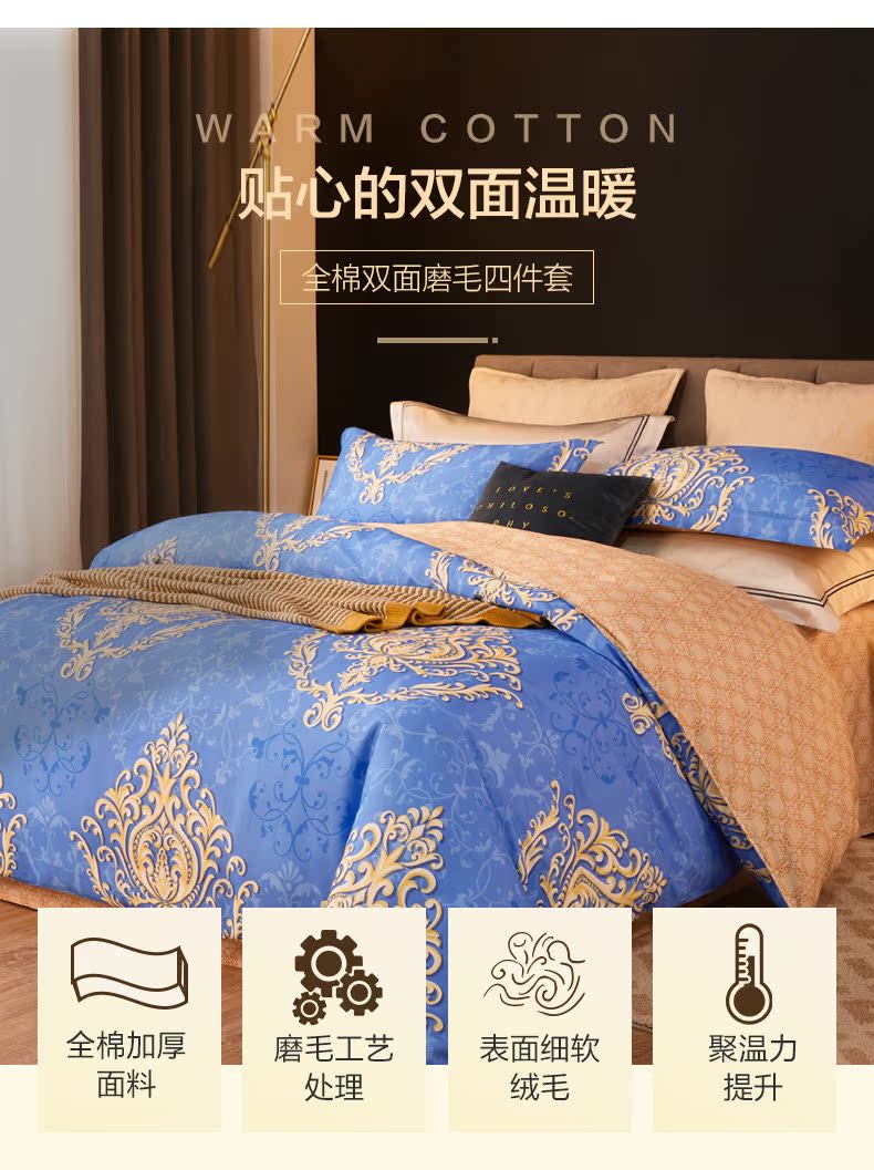 商品名称:博洋家纺全棉纯棉四件套双面磨毛加厚欧式床上用品被套床单