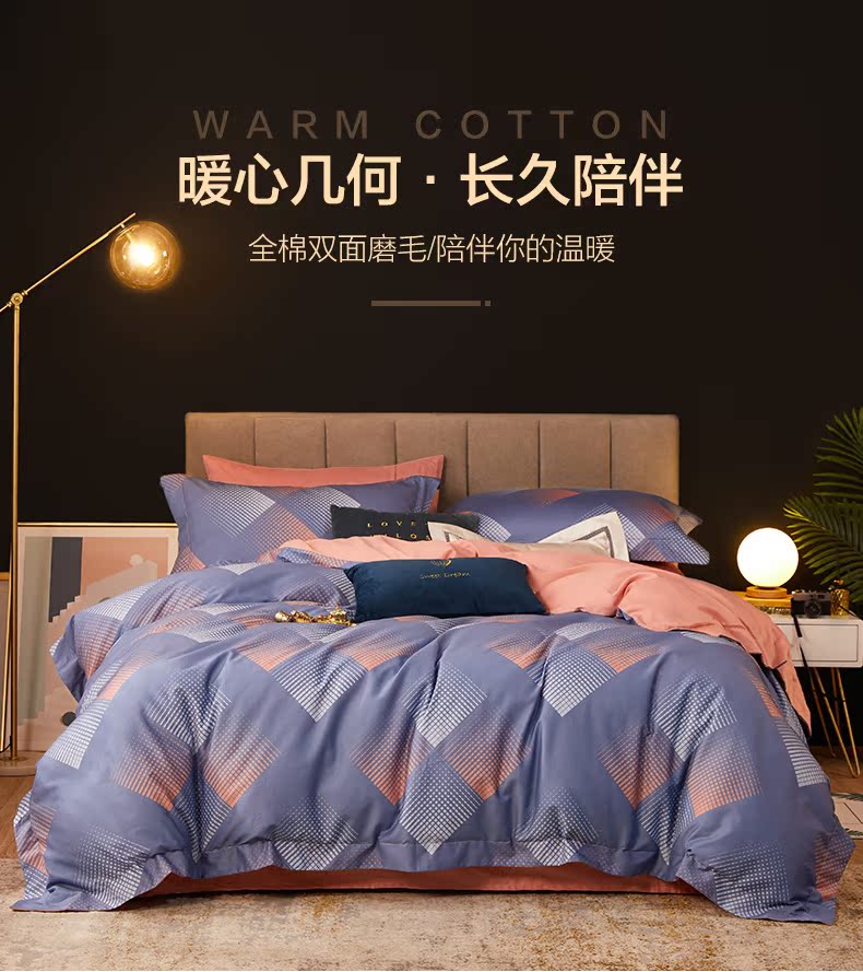 博洋家纺旗舰店四件套全棉纯棉双面磨毛加厚床上用品床单被套