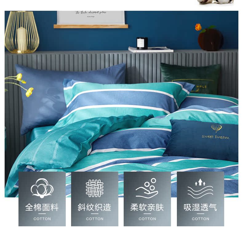 规格尺寸 | 1.2米:被套150*210cm*1 床单200*240cm*1 枕套48*74cm*1 床单为圆角 | |||