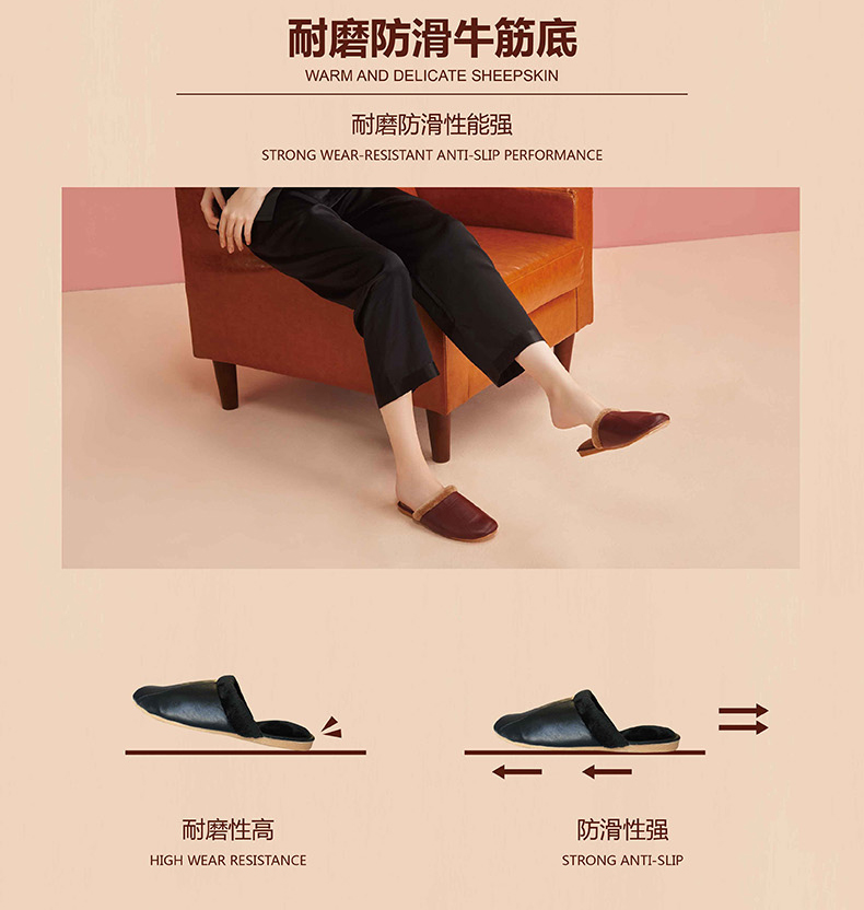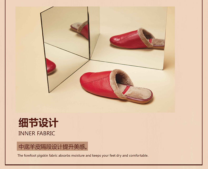 商品名称:博洋真皮羊皮拖鞋居家室内木地板耐磨防滑牛筋底情侣拖秋冬季鞋女