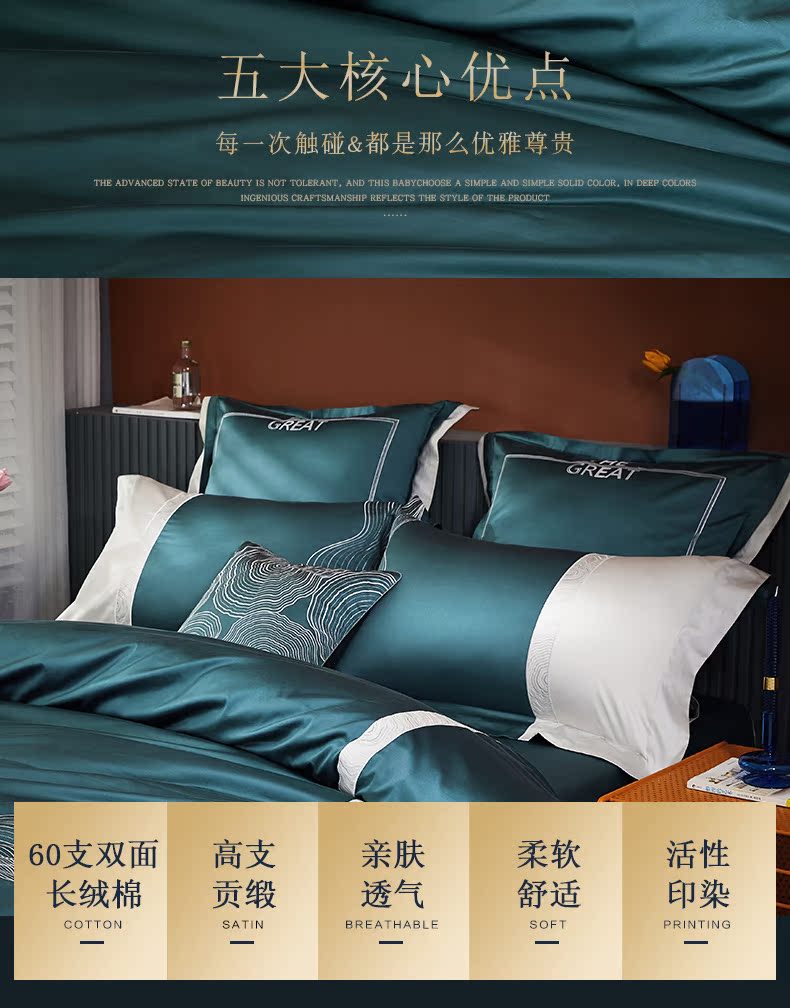 商品名称:博洋家纺60支长绒棉七件套纯棉全棉春夏被套简约北欧床上用品床单