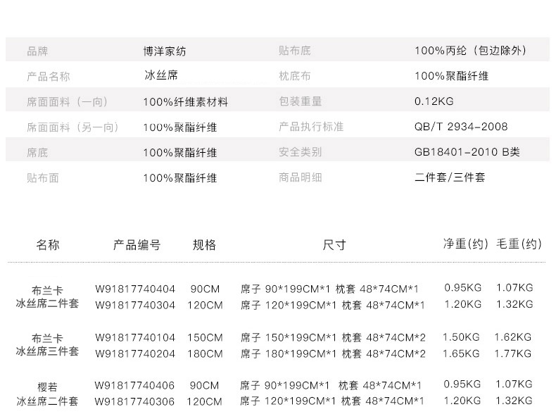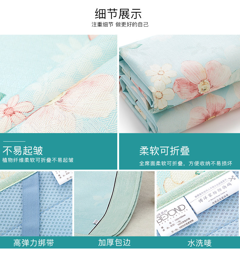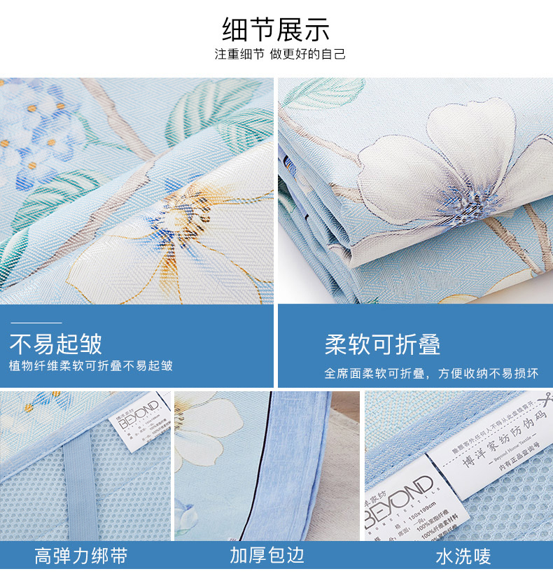 商品名称:博洋家纺冰丝凉席三件套夏季可折叠凉席1.8m床双人1.5米夏天席子
