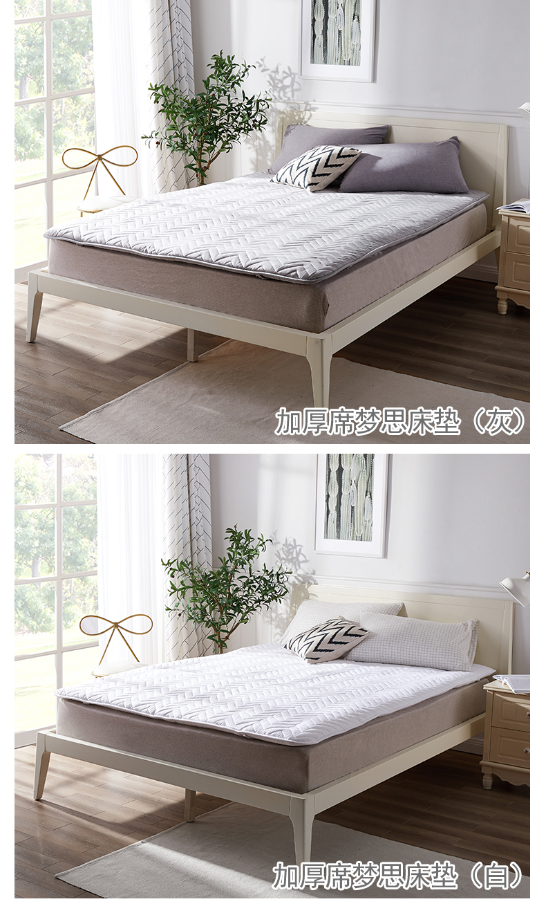 可水洗床褥白色 可水洗床垫白色(床笠款) 可水洗席梦思保护床垫 可水洗席梦思保护床垫(床笠款) 加厚席梦思床垫(灰) 1.2米:净重约2.4kg, 毛重约2.57g 加厚席梦思床垫(白) 1.2米:净重约2.4kg, 毛重约2.57g