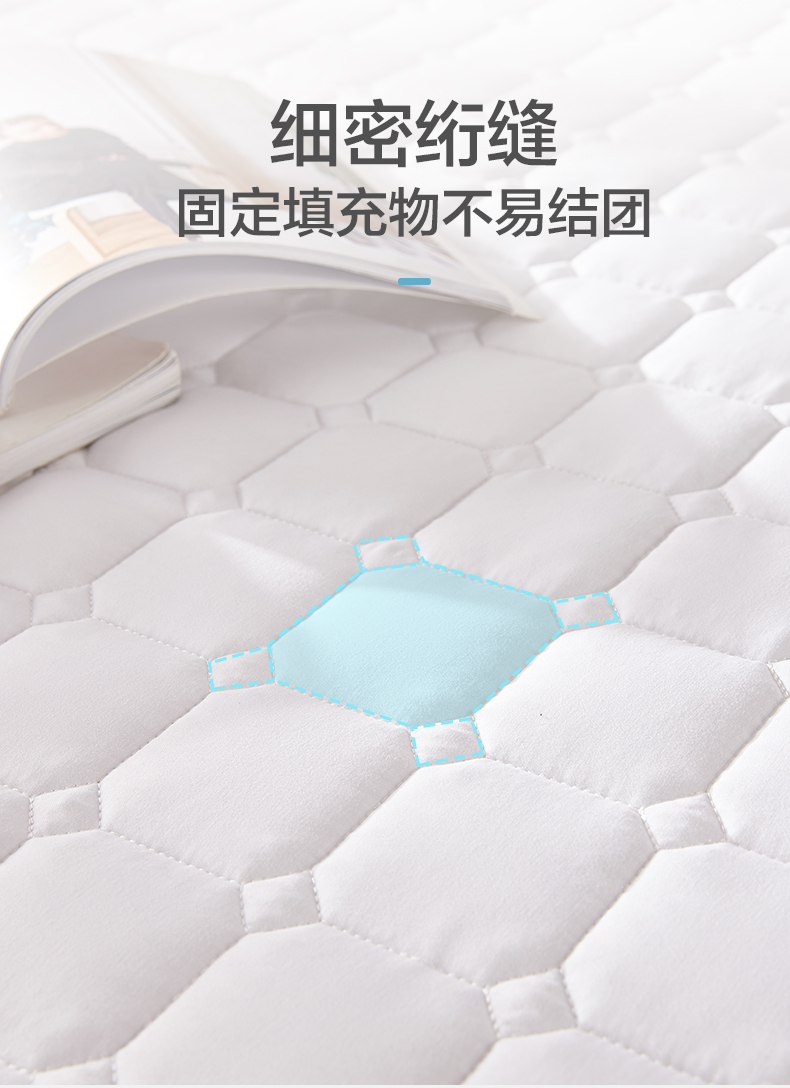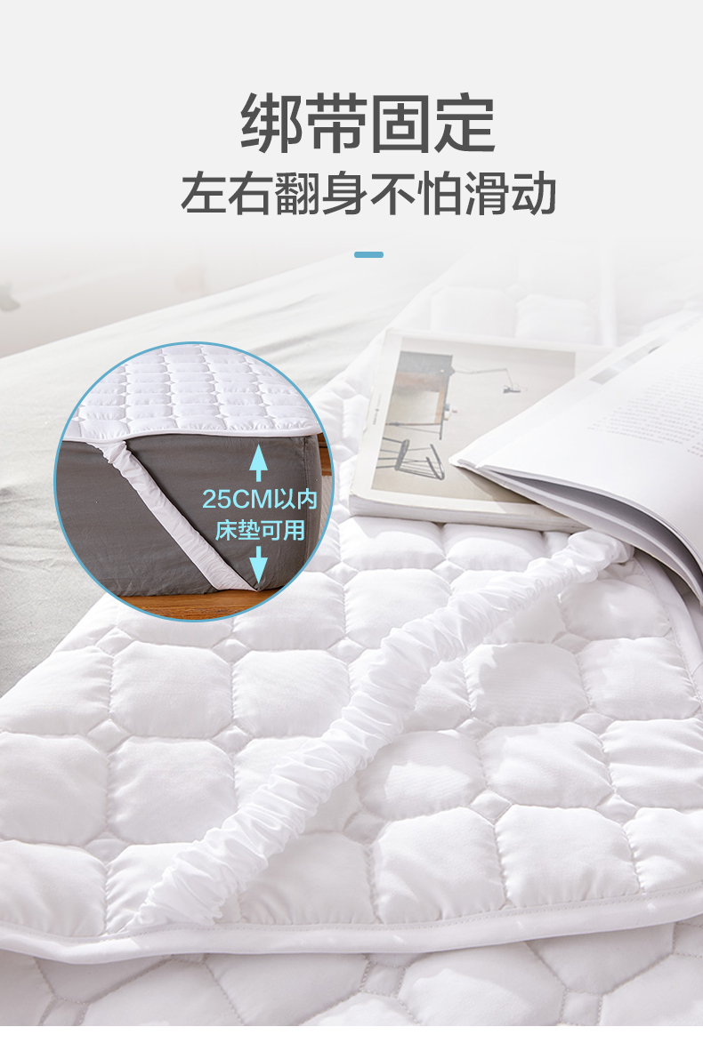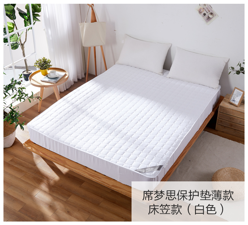 可水洗席梦思保护床垫(床笠款):面料:100%聚酯纤维     填充物:100%聚酯纤维