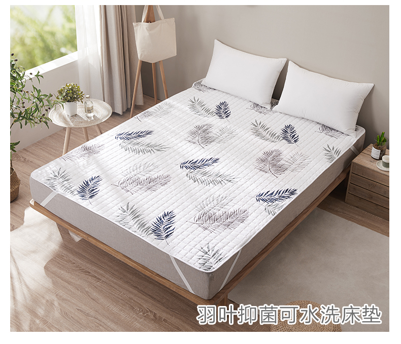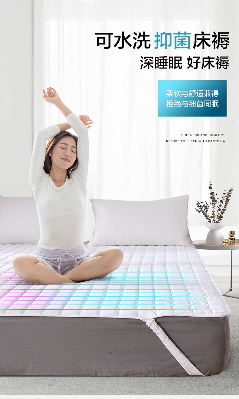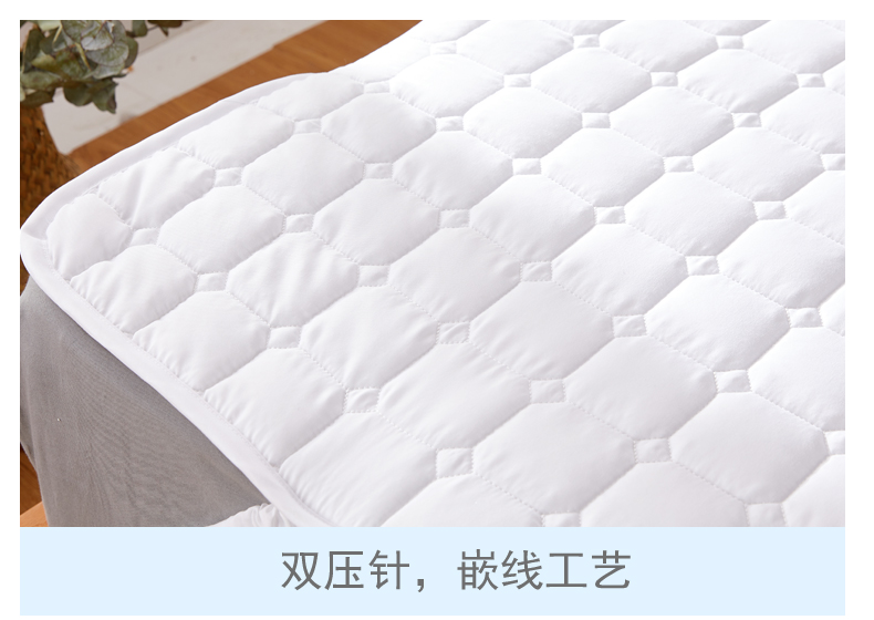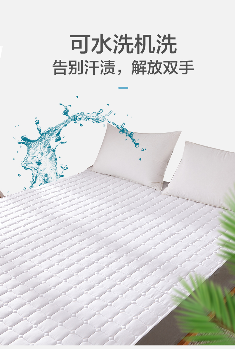 可水洗席梦思保护床垫:面料:100%聚酯纤维     填充物:100%聚酯纤维