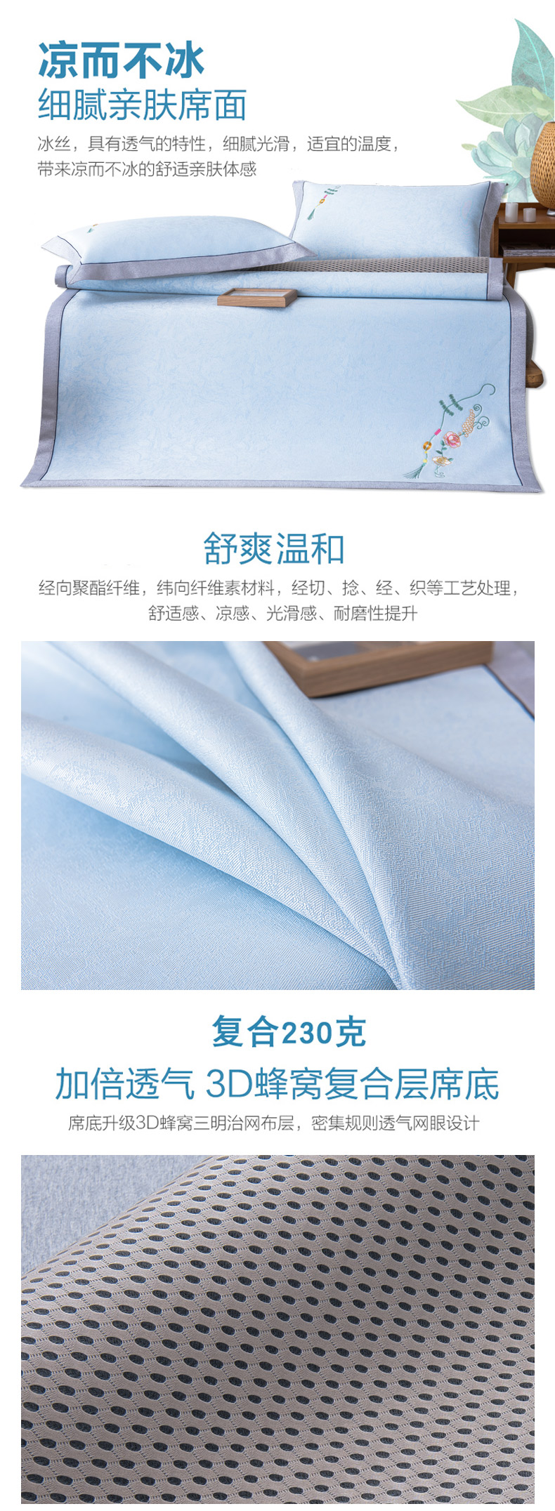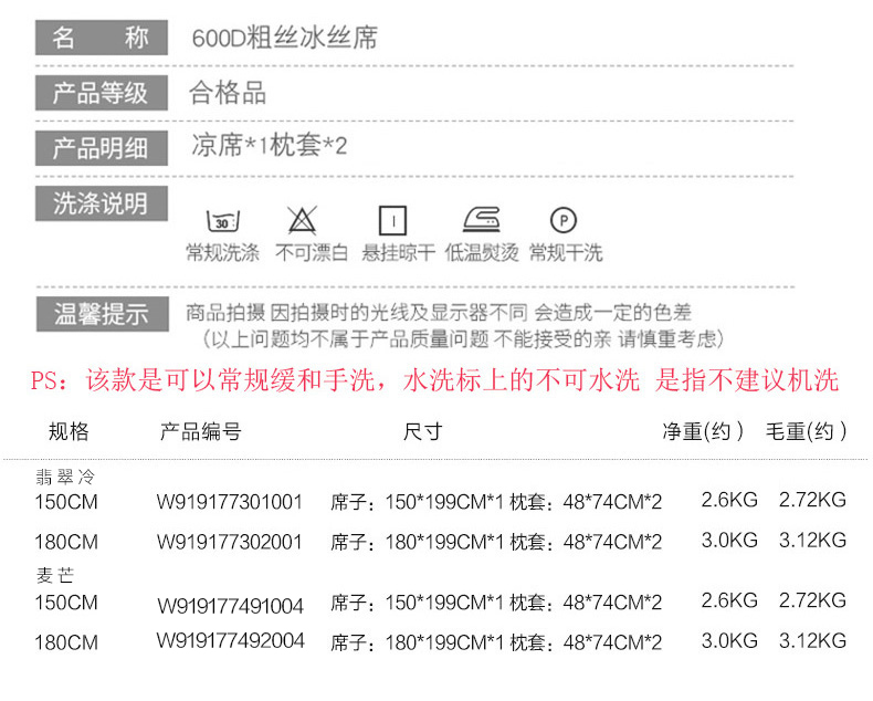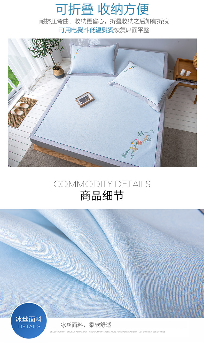 商品名称:博洋冰丝凉席可水洗可折叠1.8m床双人家用席子三件套空调席1.5米