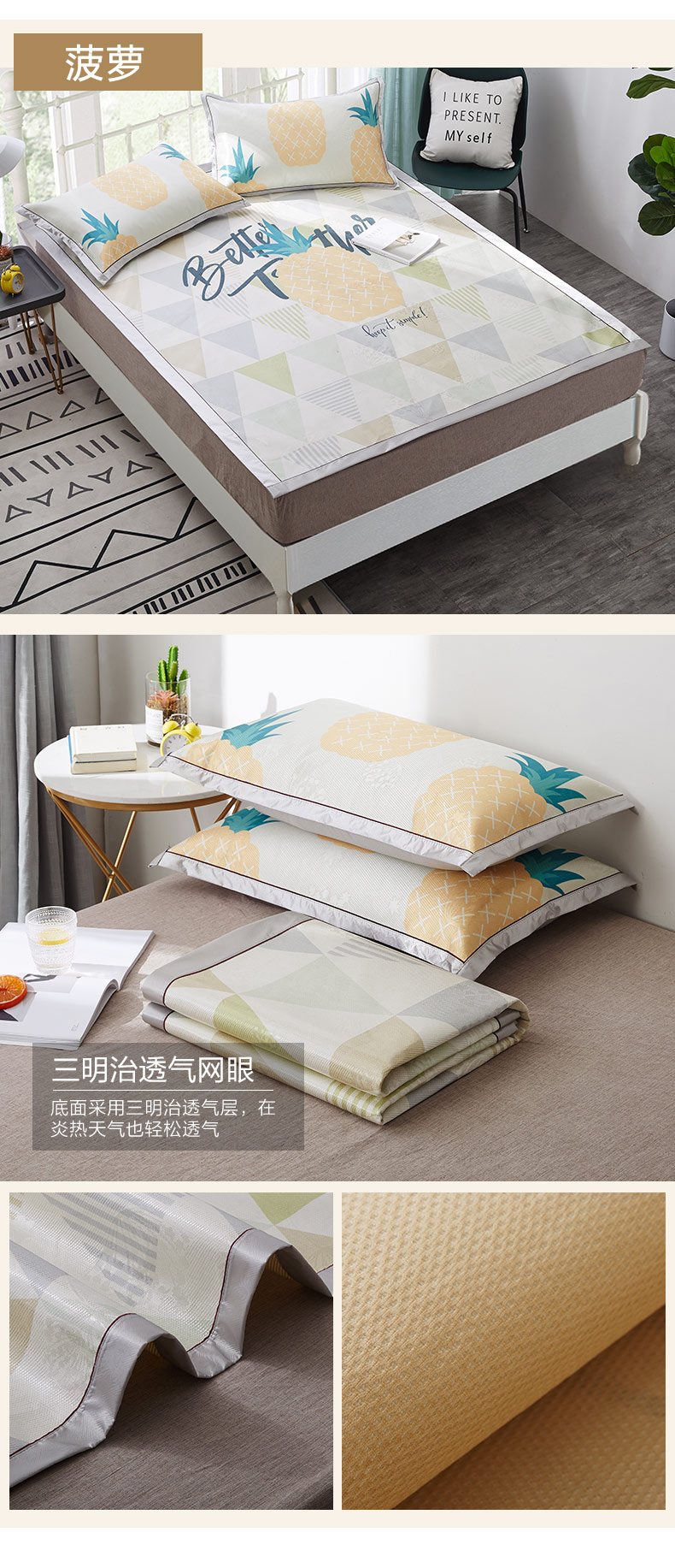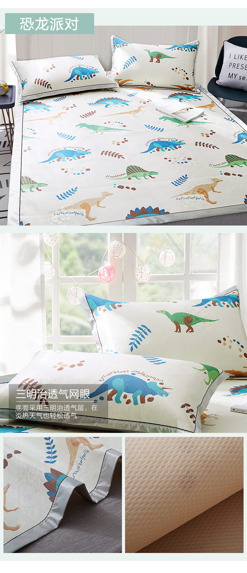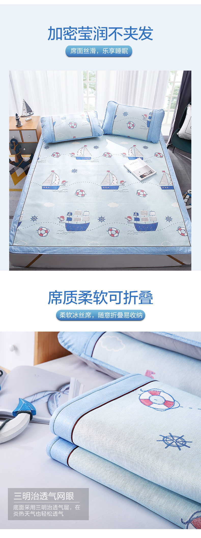 商品名称:博洋家纺冰丝凉席1.5米三件套夏季儿童凉席1.2可折叠卡通席子
