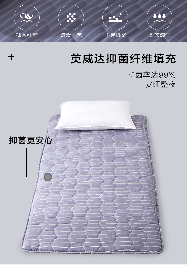 商品名称 | 横条抑菌加厚学生床垫 4D网眼抑菌加厚学生床垫 舒梦可折叠学生床垫(无抑菌薄款) 馨雅型竹炭纤维床褥 舒梦抑菌加厚学生床垫 菁悦可折叠学生床垫 静竹可折叠学生床垫 |