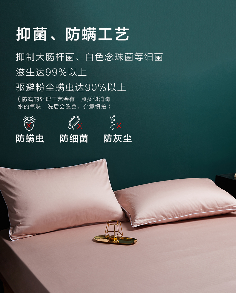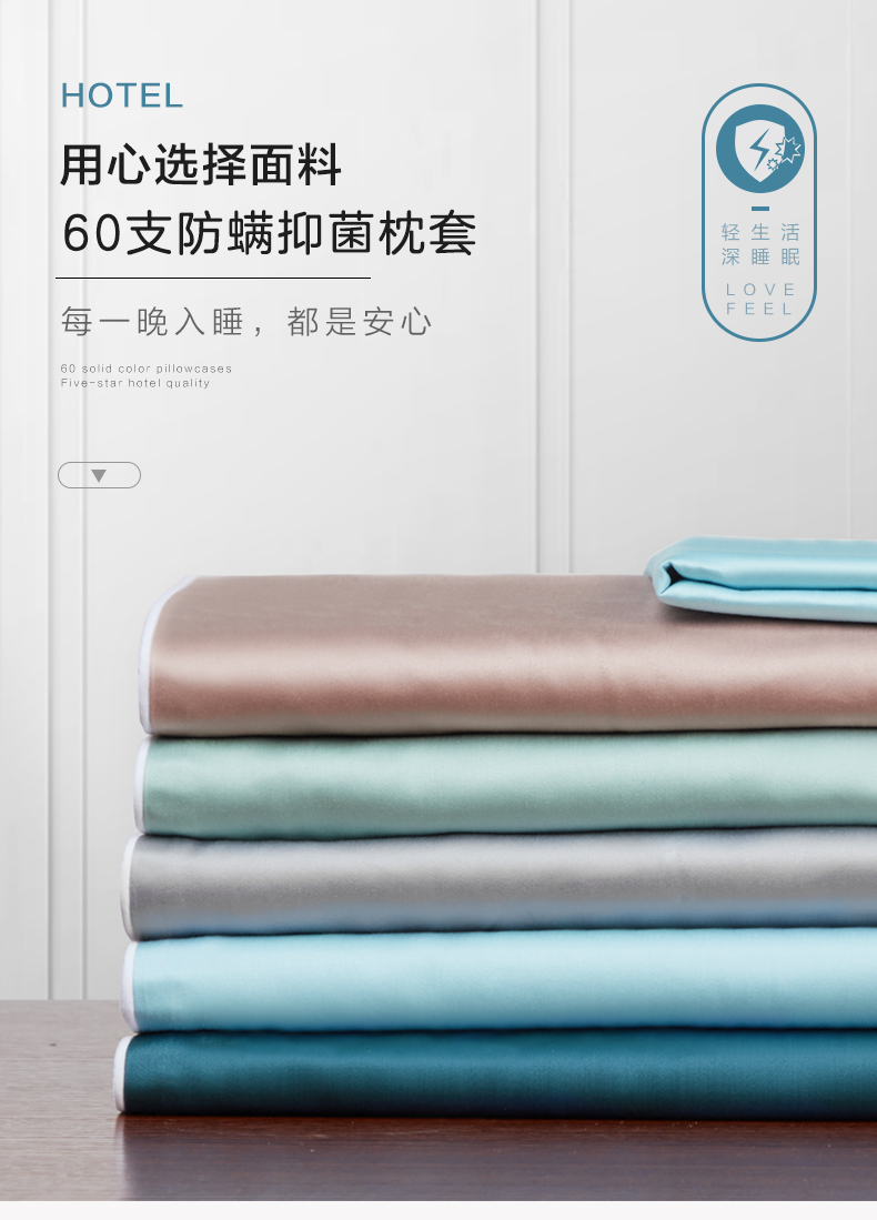 博洋60支长绒棉枕套一对装纯棉枕头套单个全棉双人枕芯抑菌防螨
