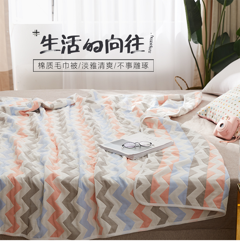 博洋毛巾被纯棉薄款夏季单人双人纱布条纹被子夏天午睡空调盖毯