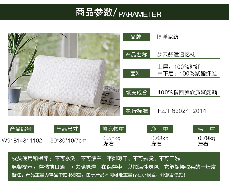 商品名称:博洋记忆棉枕头单人双人家用成人慢回弹学生枕芯护颈椎助睡眠枕头
