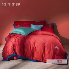 博洋60支长绒棉结婚四件套全棉纯棉婚庆酒红色床上用品大红婚床