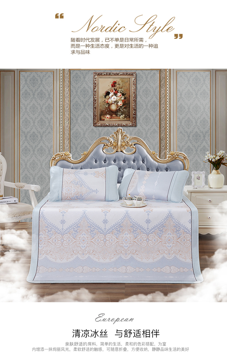 博洋家纺凉席夏季1.8m床冰丝席三件套1.5米可折叠学生空调软席子