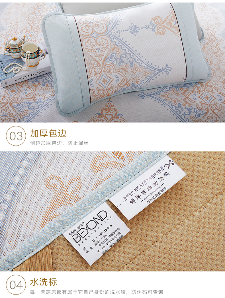 商品名称:博洋家纺凉席夏季1.8m床冰丝席三件套1.5米可折叠学生空调软席子