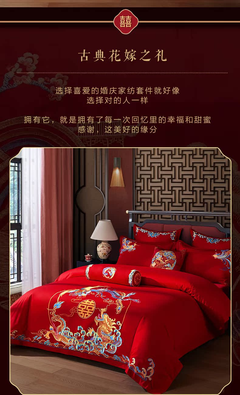 博洋家纺结婚四件套婚庆床上用品大红红色全棉纯棉新婚婚房喜被