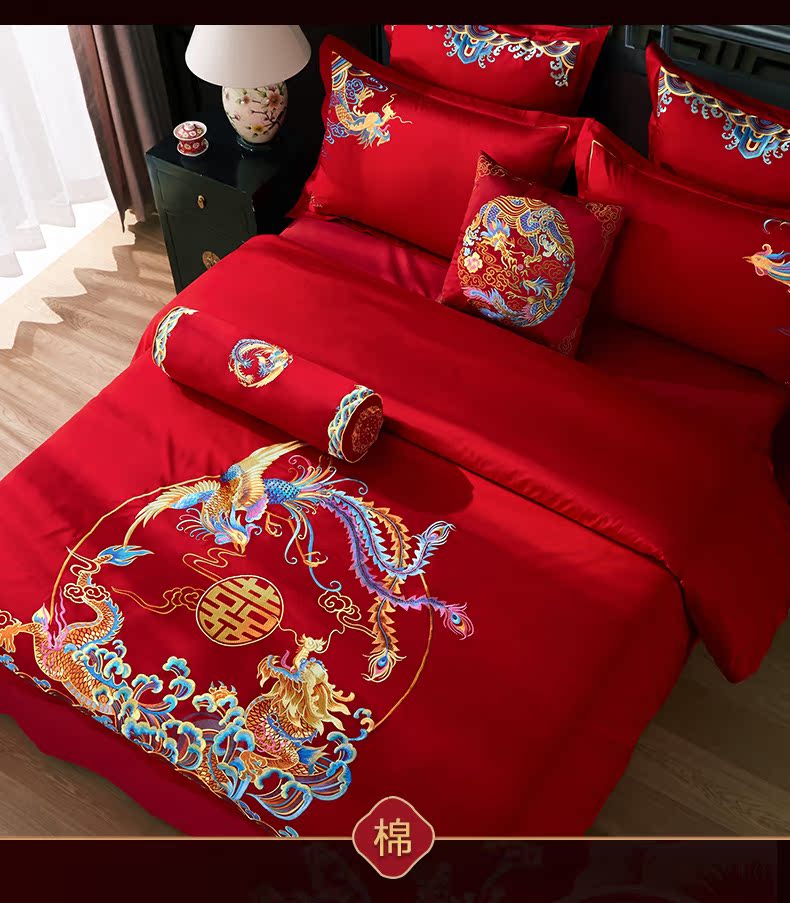 商品名称:博洋家纺结婚四件套婚庆床上用品大红红色全棉纯棉新婚婚房喜被