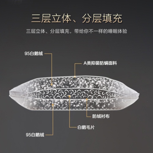 商品名称:博洋全棉羽绒枕头单人双人家用A类抑菌防螨95白鹅绒枕芯酒店枕