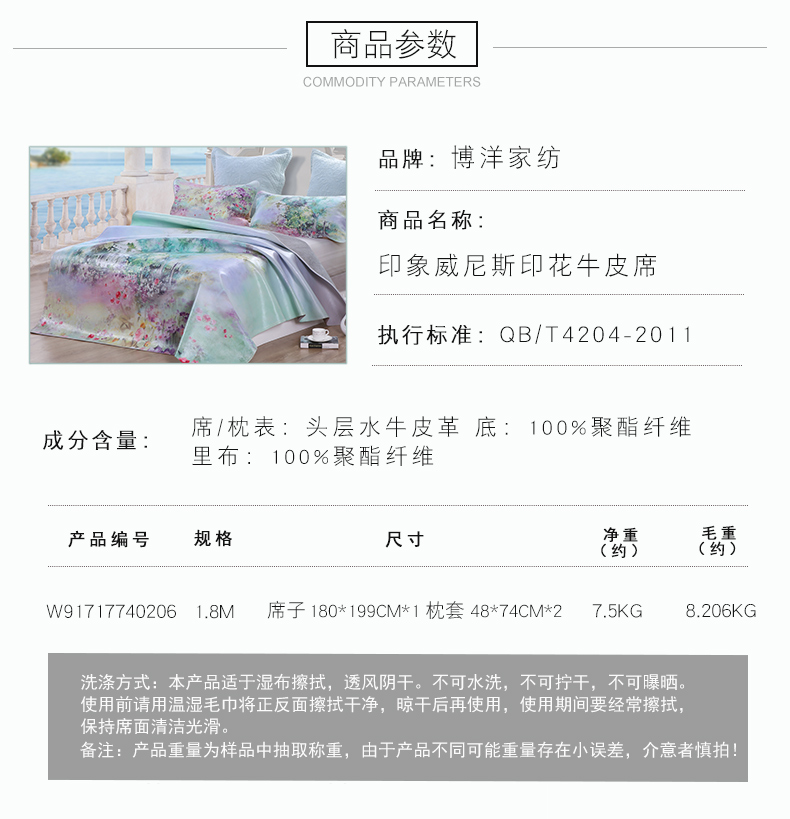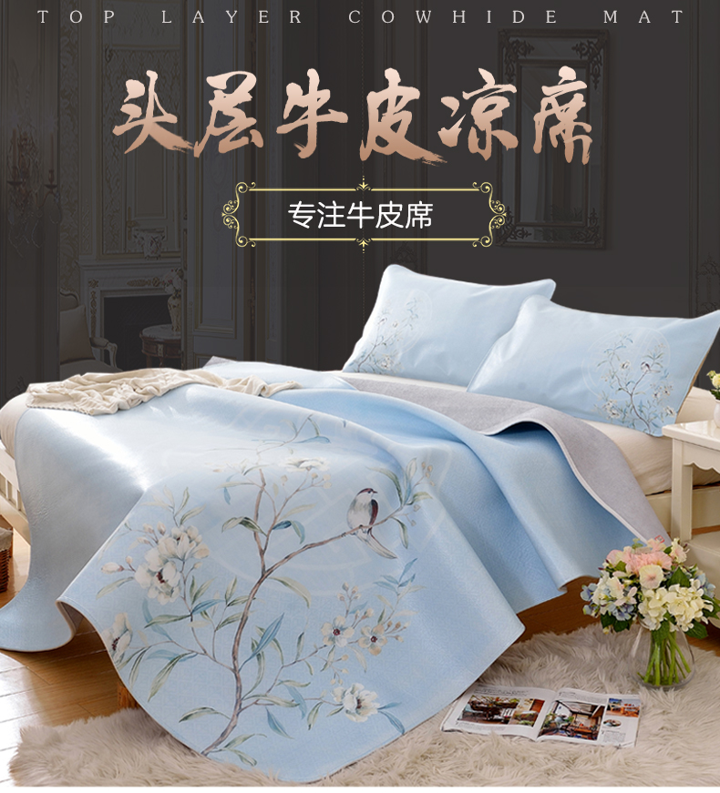 商品名称:博洋家纺头层水牛皮凉席1.8m床三件套夏季双人真皮空调软席子